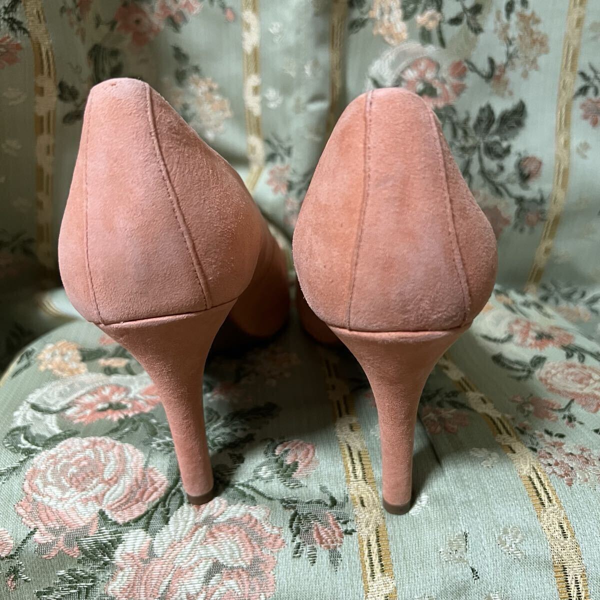 優しいコーラルピンク(サーモンピンク)のスエード素材が上品で、ビジネスシーンからフォーマル、デイリーまで幅広く活躍します。