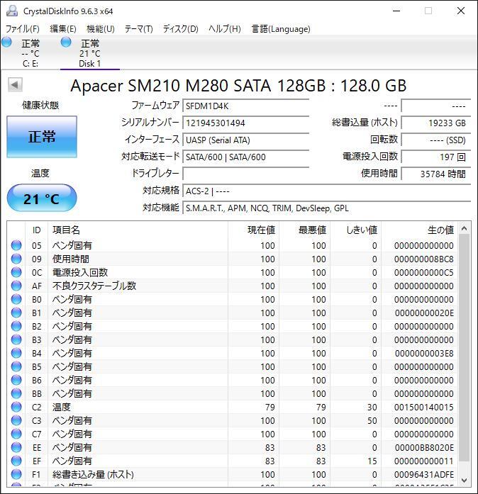 S71105160 Apacer M.2 SATA 128GB SSD 4点 【中古動作品】