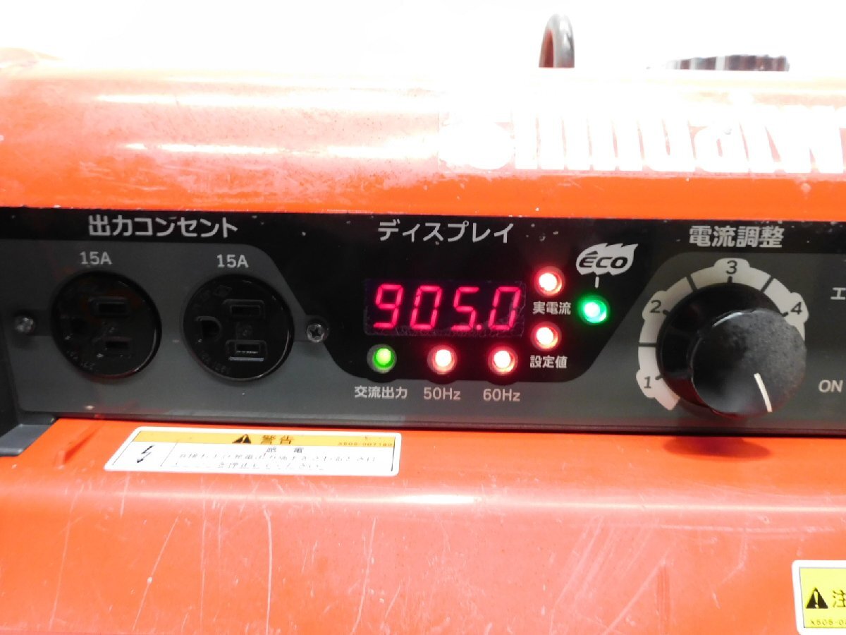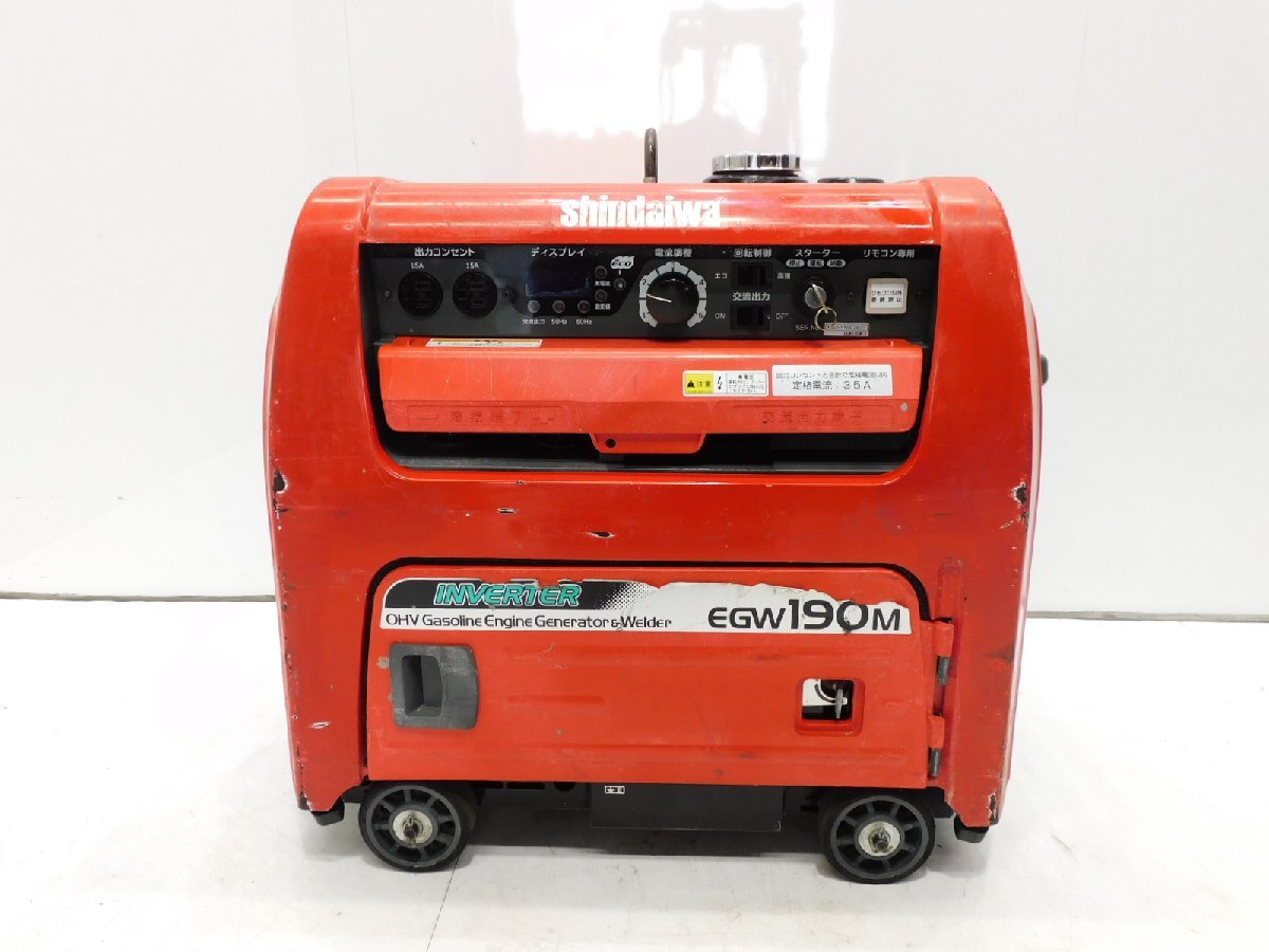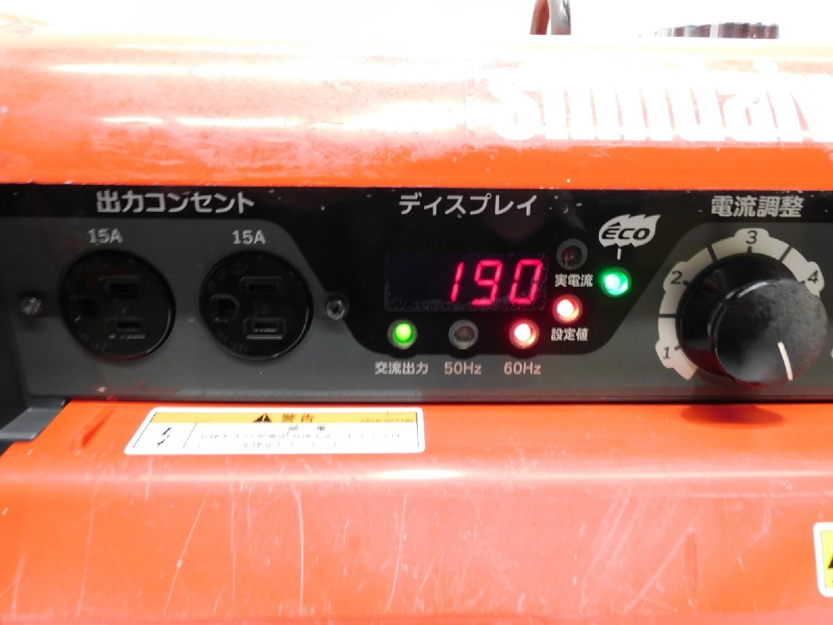 ■エコ溶接/エコ発電 ■超低騒音 ■快適・便利機能 溶接動作確認済みです。 【整備箇所】 エンジンオイル交換 キャブレター 【点検箇所】 燃料タンク エアークリーナー フィルター 燃料ホース その他調整 清掃 □溶接機 メーカー shindaiwa 型式 EGW190M-I 出力電流[A] 170A 電流調整範囲[A] 30~190A 使用溶接棒[mm] 2.0~4.0 □発電機 定格電圧[V] 単相100V 周波数[Hz] 50Hz / 60Hz 定格出力[kVA] 3.5kVA 使用燃料 ガソリン 燃料タンク[L] 約15.0 外形寸法[mm] 長さ730×幅545×高さ647 本体乾燥質量[kg] 95 |