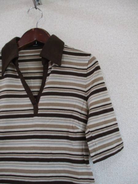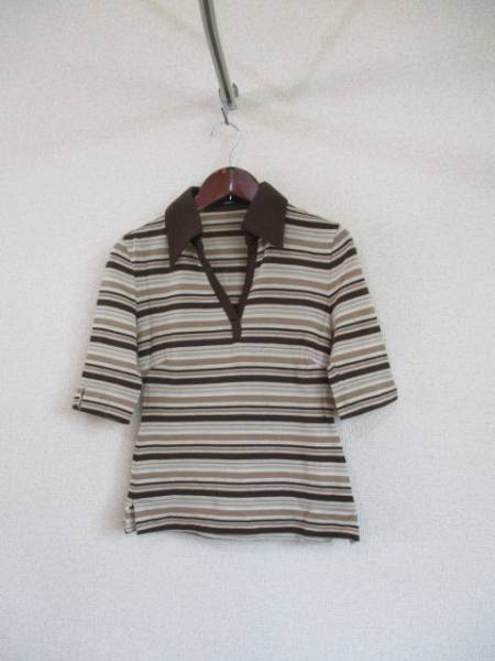 商品名 | INED茶系ボーダー5分袖ニットポロシャツ(USED)61116 |