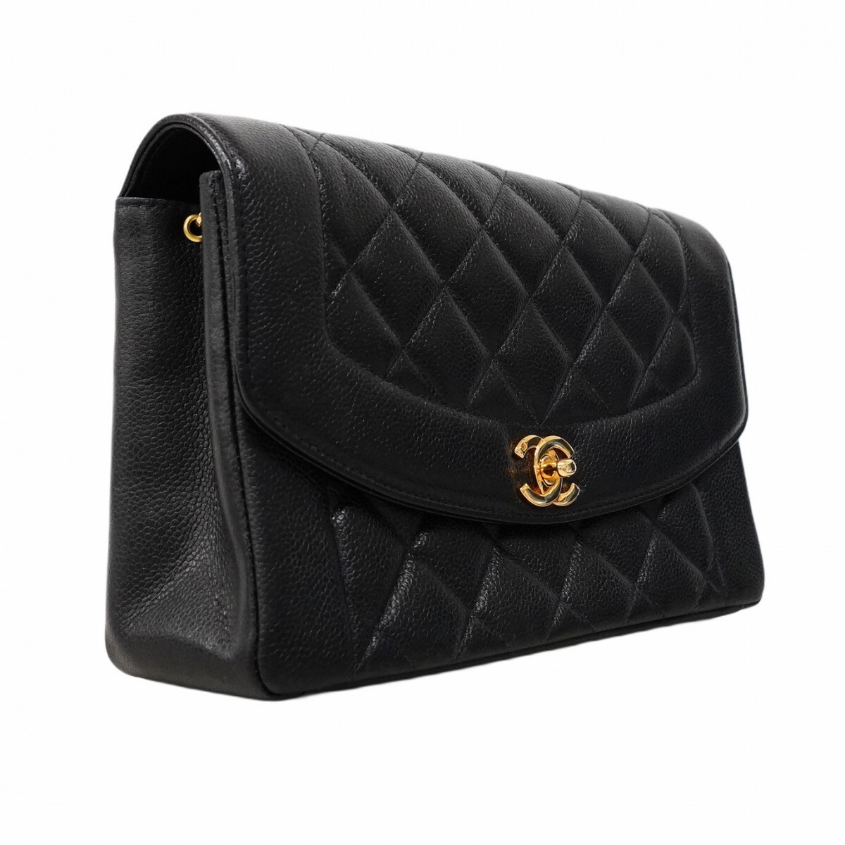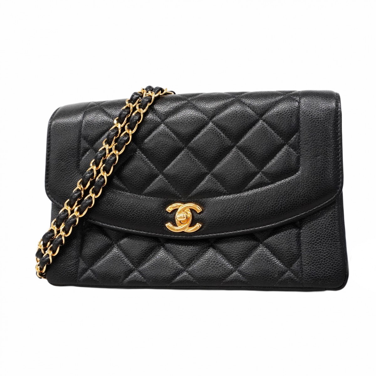 ★最終価格★SALE【5mc2595】シャネル ショルダーバッグ マトラッセ チェーンショルダー ダイアナ キャビアスキン ブラック ゴールド金具