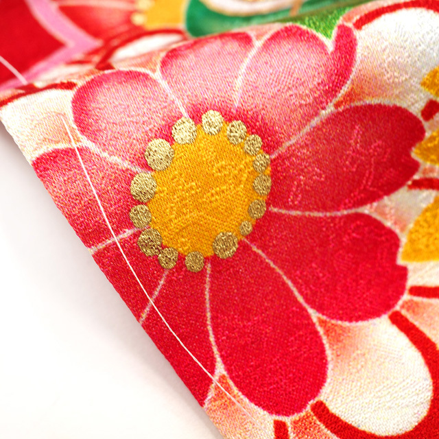 そこに、椿や桜・梅などの四季の花や、打ち出の小槌・扇 など古典柄が染められています。