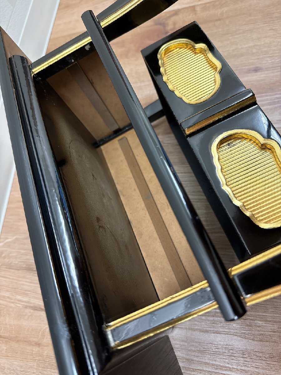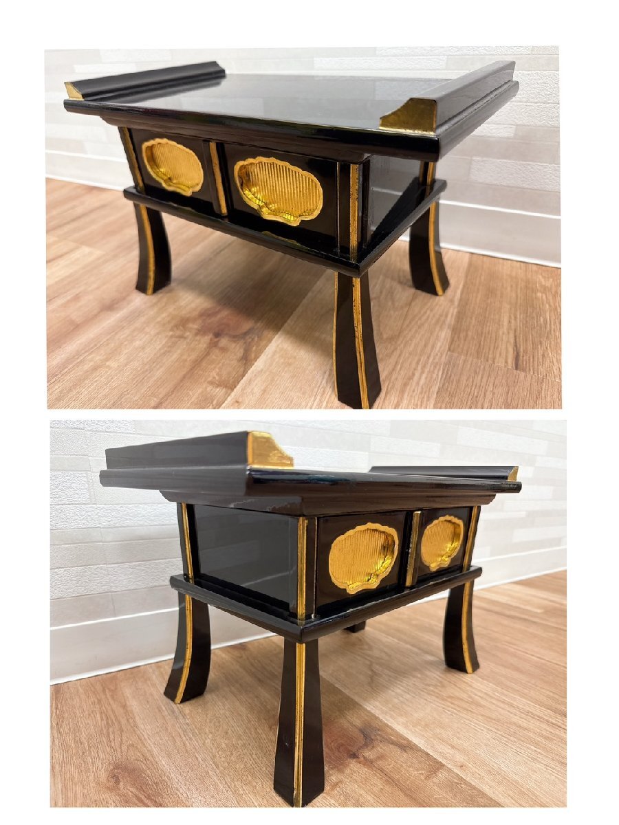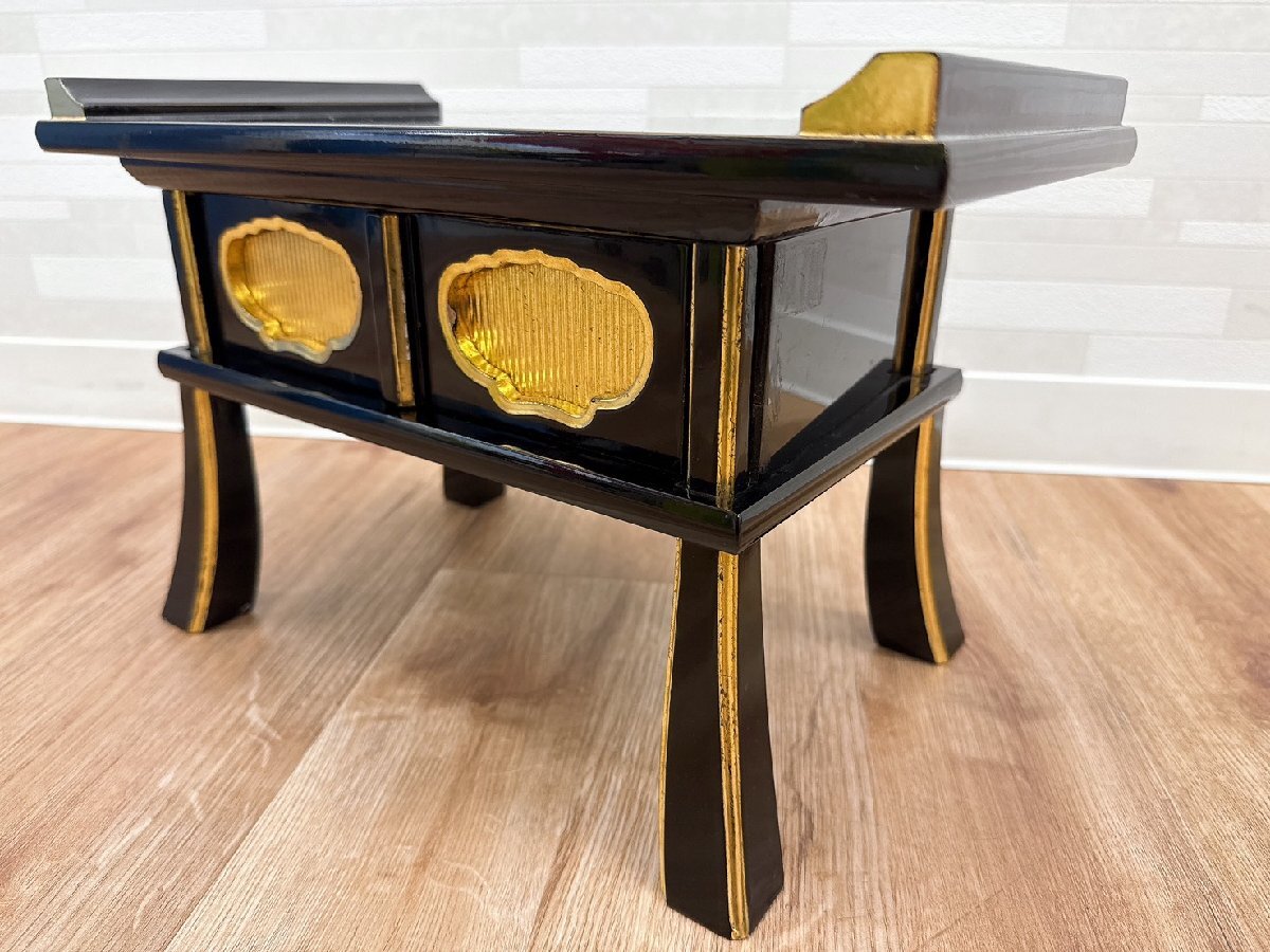 ■詳細:主に金仏壇で使用する経机です。引き出しが付いていますので、中に経本や、数珠などを収納する事が可能です。