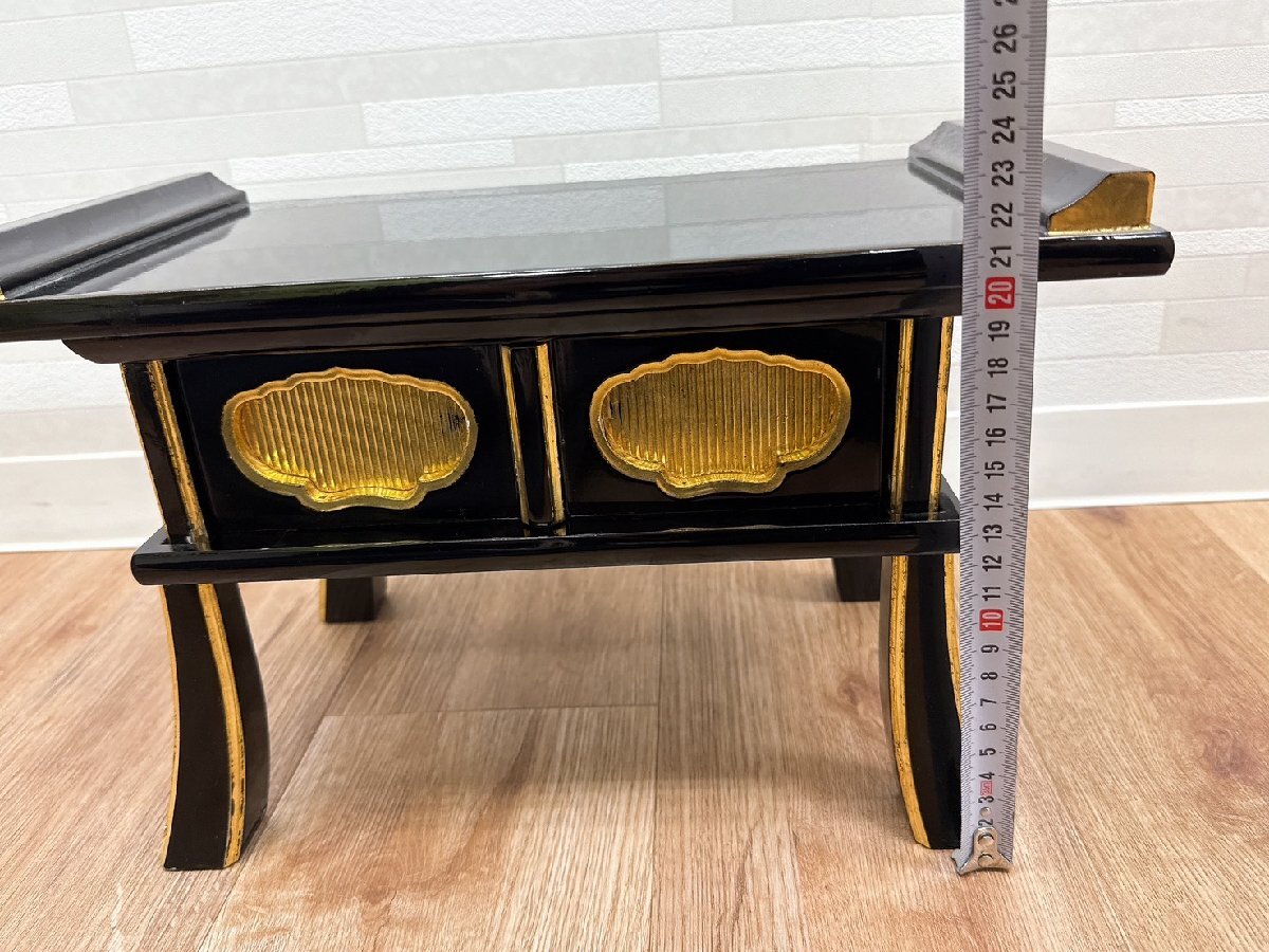 1円 経机 面金 横(約)36 cm 縦(約)19㎝ 高さ(約)21cm 金彩 漆芸 漆塗り 経台 仏具 机 仏壇 仏壇前 供養台 お供え机 仏教 中古現状品【KN0