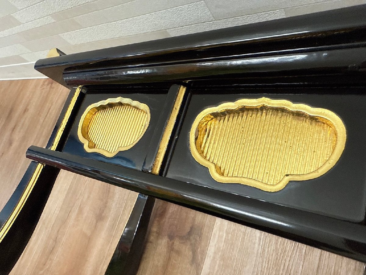 1円 経机 面金 W43.5cm H27cm 金彩 漆芸 漆塗り 経台 仏具 机 仏壇 仏壇前 供養台 お供え机 仏教 中古現状品【KN014】