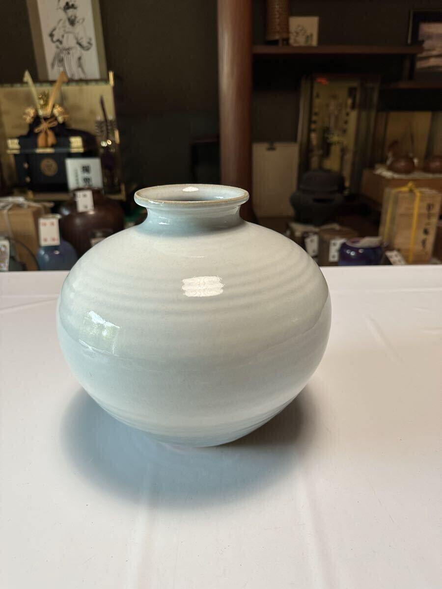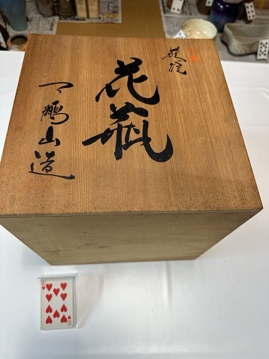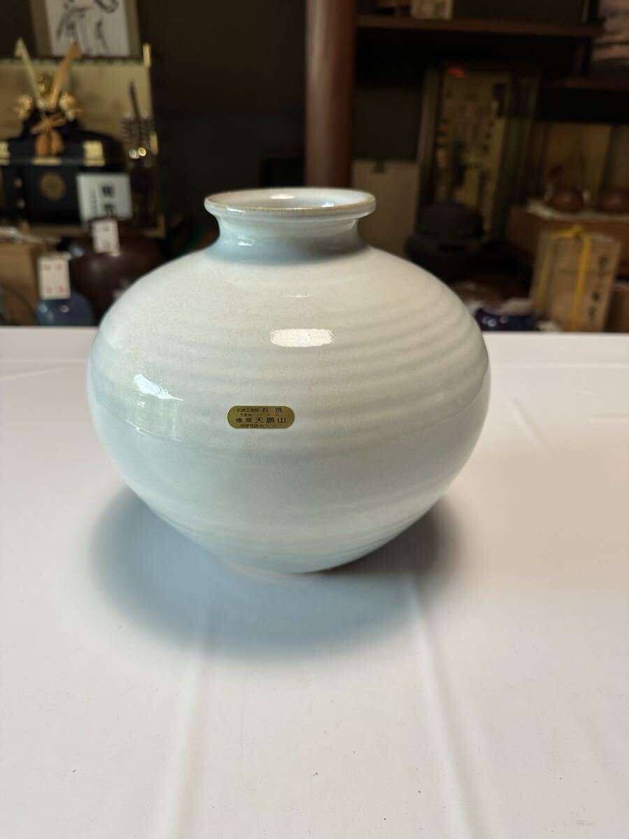 商品名:花器 花瓶 萩焼椿窯天鵬山 廣瀬淡雅作 鵬山造の刻印あり H=22センチ φ=24センチ 木箱入り