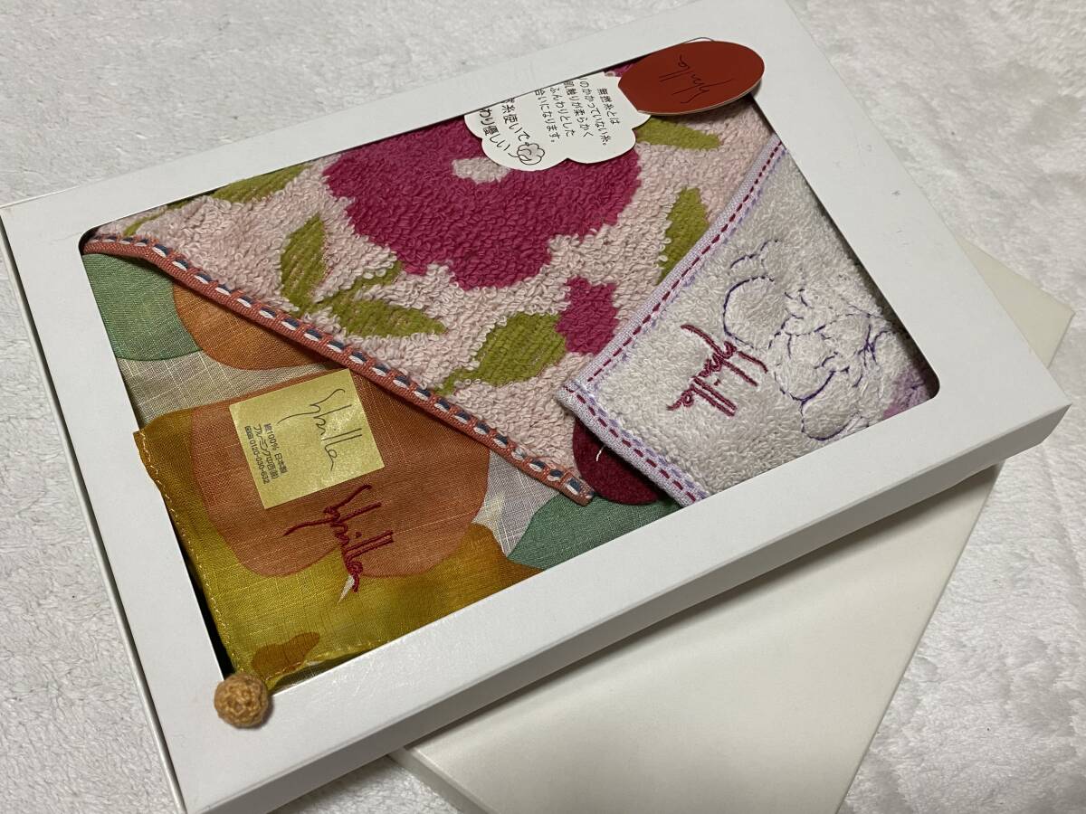 新品【Sybilla/シビラ】 婦人ハンカチ3枚 ブルーミング中西 3枚ともサイドにロゴ刺繍入り 1枚のタオルハンカチは ふんわり柔らかな無撚糸使い 箱なし発送のみとさせていただきます ご了承ください ★サイズ (タオルハンカチ2枚)約25cm角 (残り1枚)約57×58cm ★品質 綿100% |