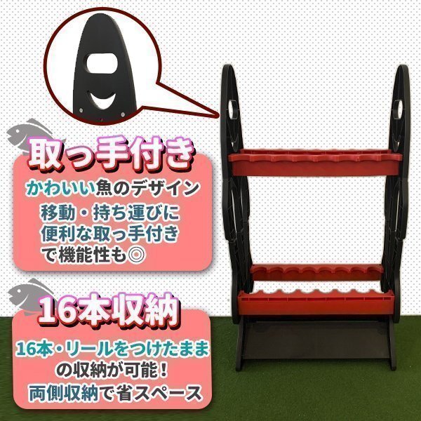 ロッドスタンド 16本 釣り竿 ロッドホルダー ロッド スタンド プラスチック 組立 ラック 収納 ディスプレイ レッド 赤