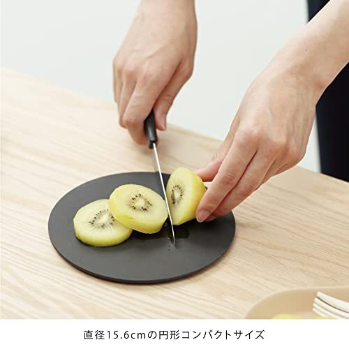天然木をブレンドした樹脂製のまな板。 表面は凹凸のない非多孔性なので、水分や細菌の侵入を防ぎ清潔に使っていただけます。 usumono plate18に収納できるコンパクトサイズ(直径15.6cm)で、厚さ6mmと薄いので単体でも場所と取らずに収納可能です。 底面には滑り止め塗装をしているので、テーブルやシンクの上でも安心してご使用いただけます。