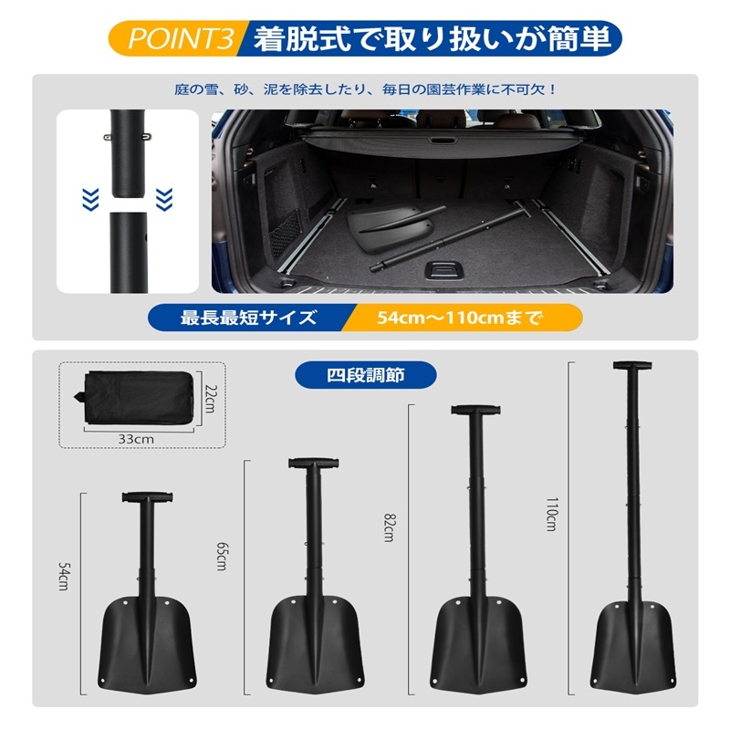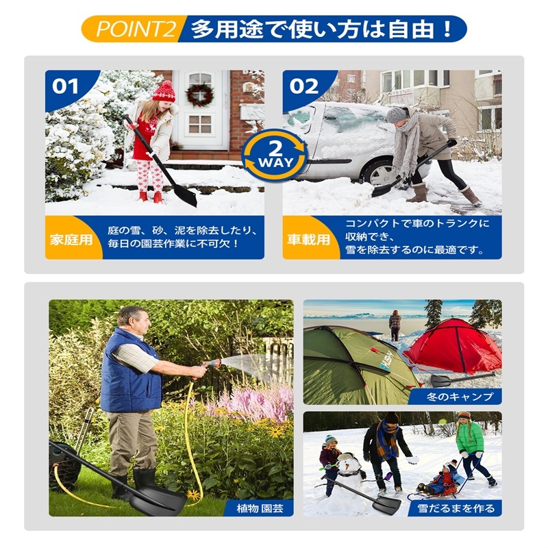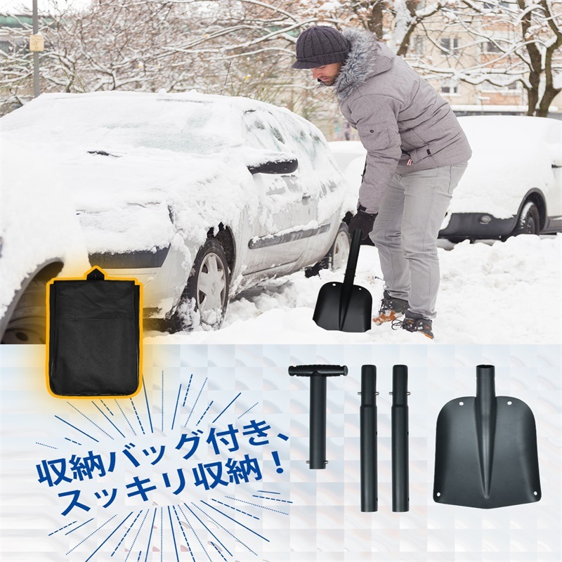 雪かきスコップ スノーショベル 伸縮式 折りたたみ アルミ合金 車載スコップ スノーダンプ 頑丈 収納 雪かき 園芸 作業 冬