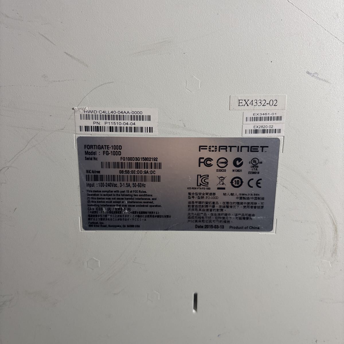 MYM11-55 激安 FORTINET FG-100D FORTIGATE 通電、電源オン、オフOK 中古現状品 ※3回再出品で処分