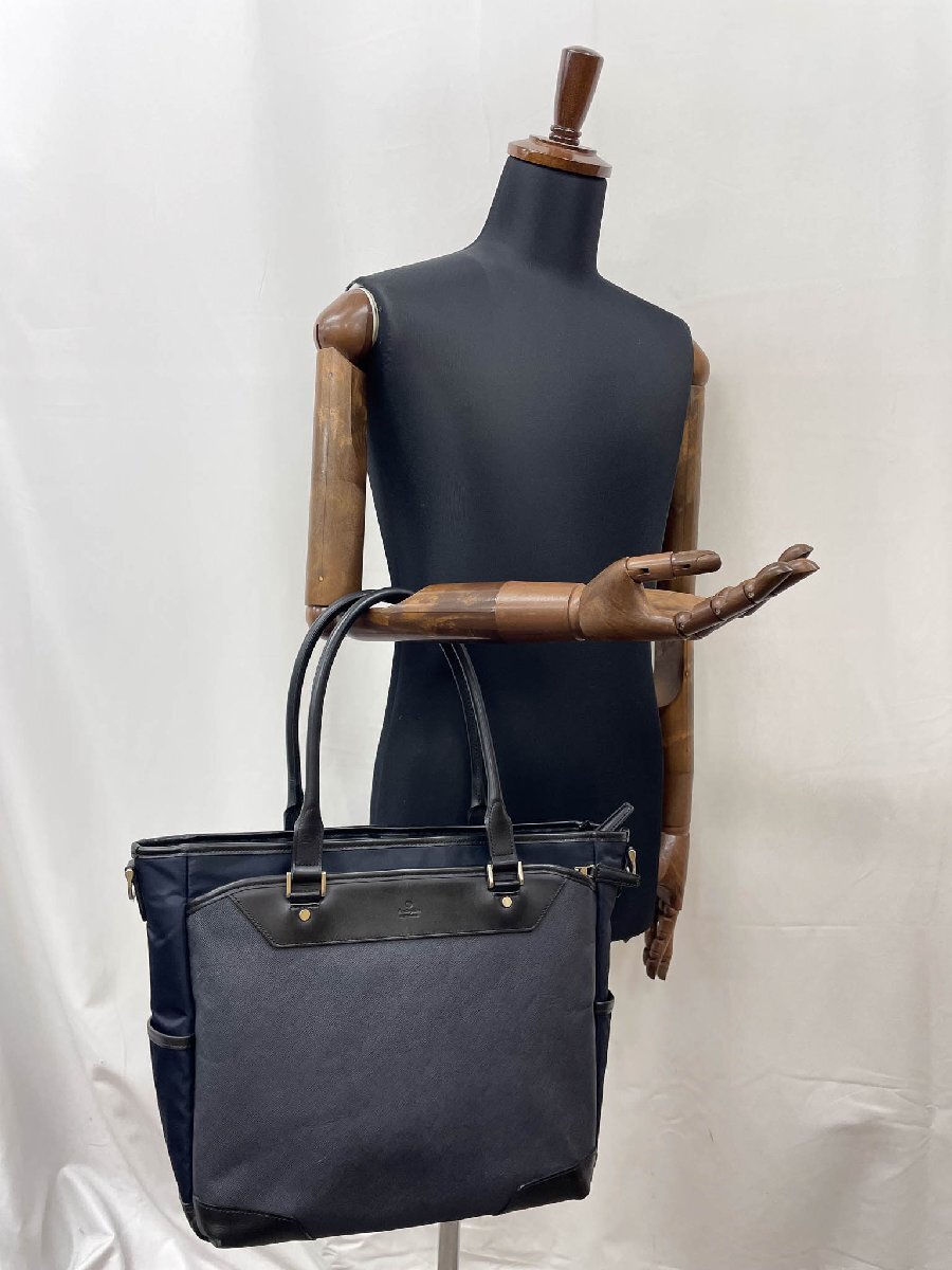 超美品 【マスターピース master-piece】 アベニュー レザー 2WAYトートバッグ 43085 (メンズ) ブラック×ネイビー ◇5MG3165◇