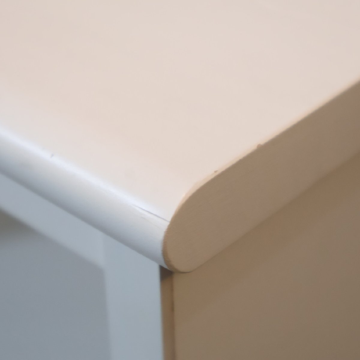 ホワイトカラーでちょっとレトロな愛らしいデザインのキャビネット。