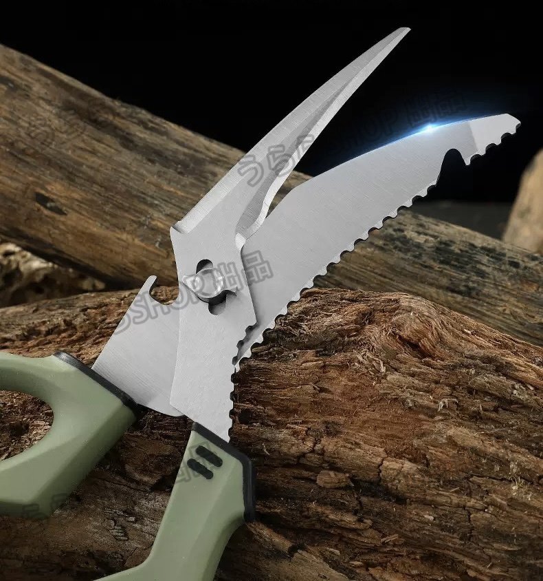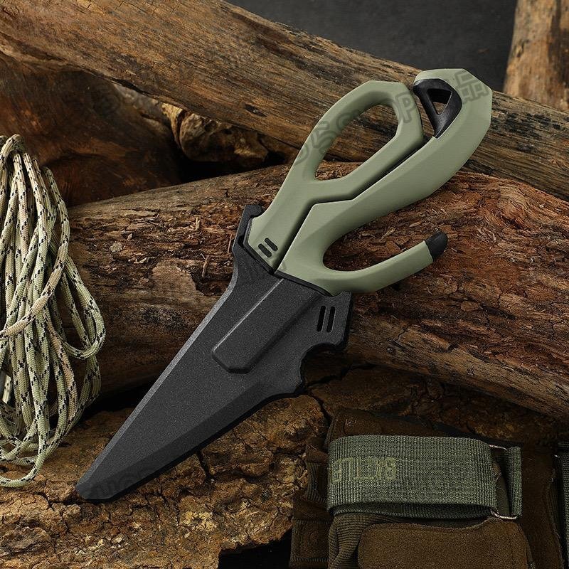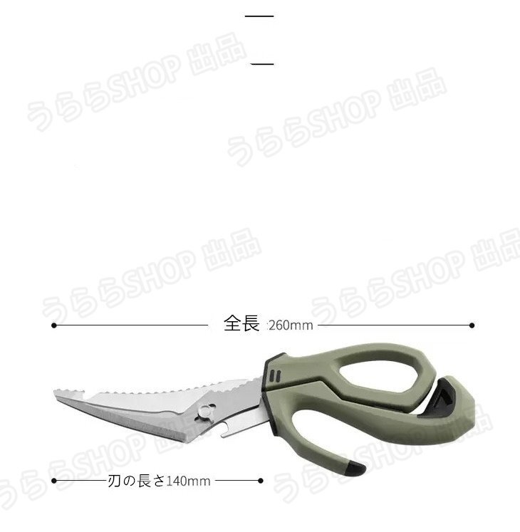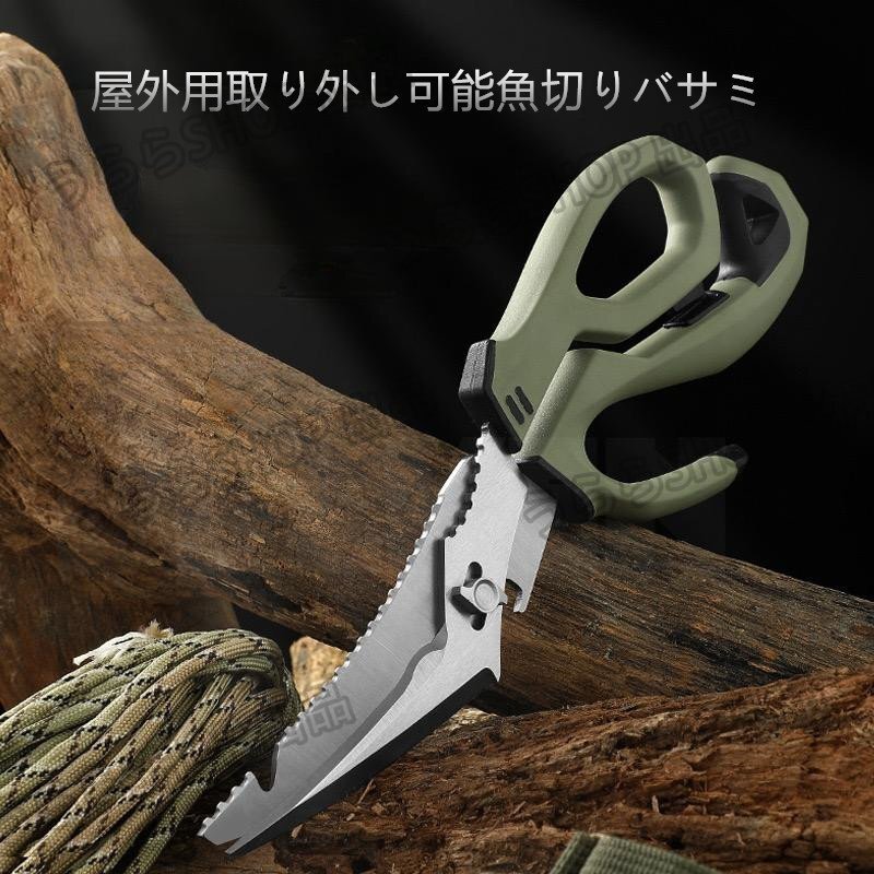 アウトドア 多機能 強力はさみ ナイフ ステンレス鋼 料理 釣り開く力が不要 キャンプ 野外登山 長さ26cm シース付 xhw0100