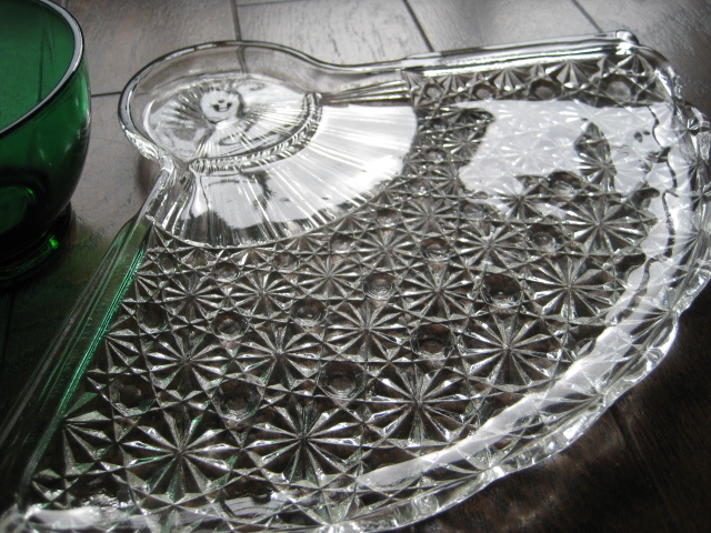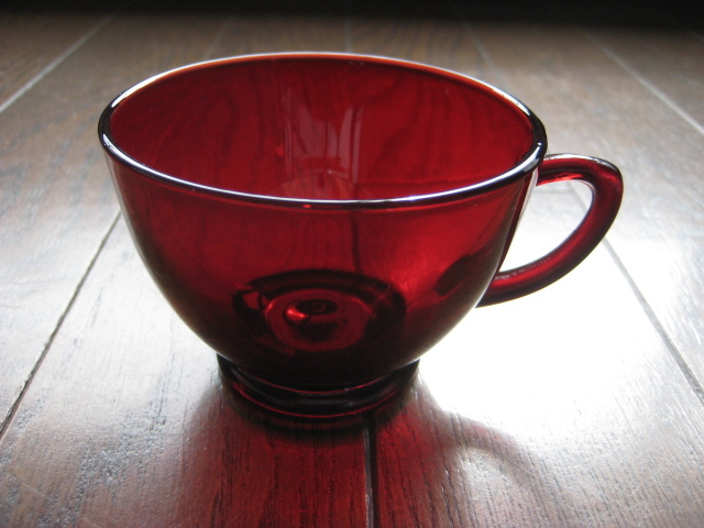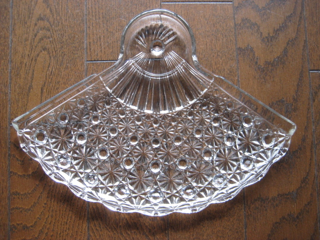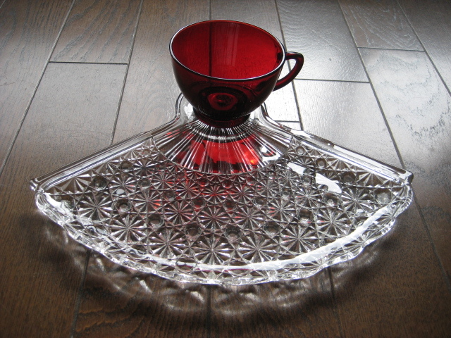 希少なファイヤーキング スナックセット クリアの扇型のトレイ&ロイヤルルビーのカップです。
