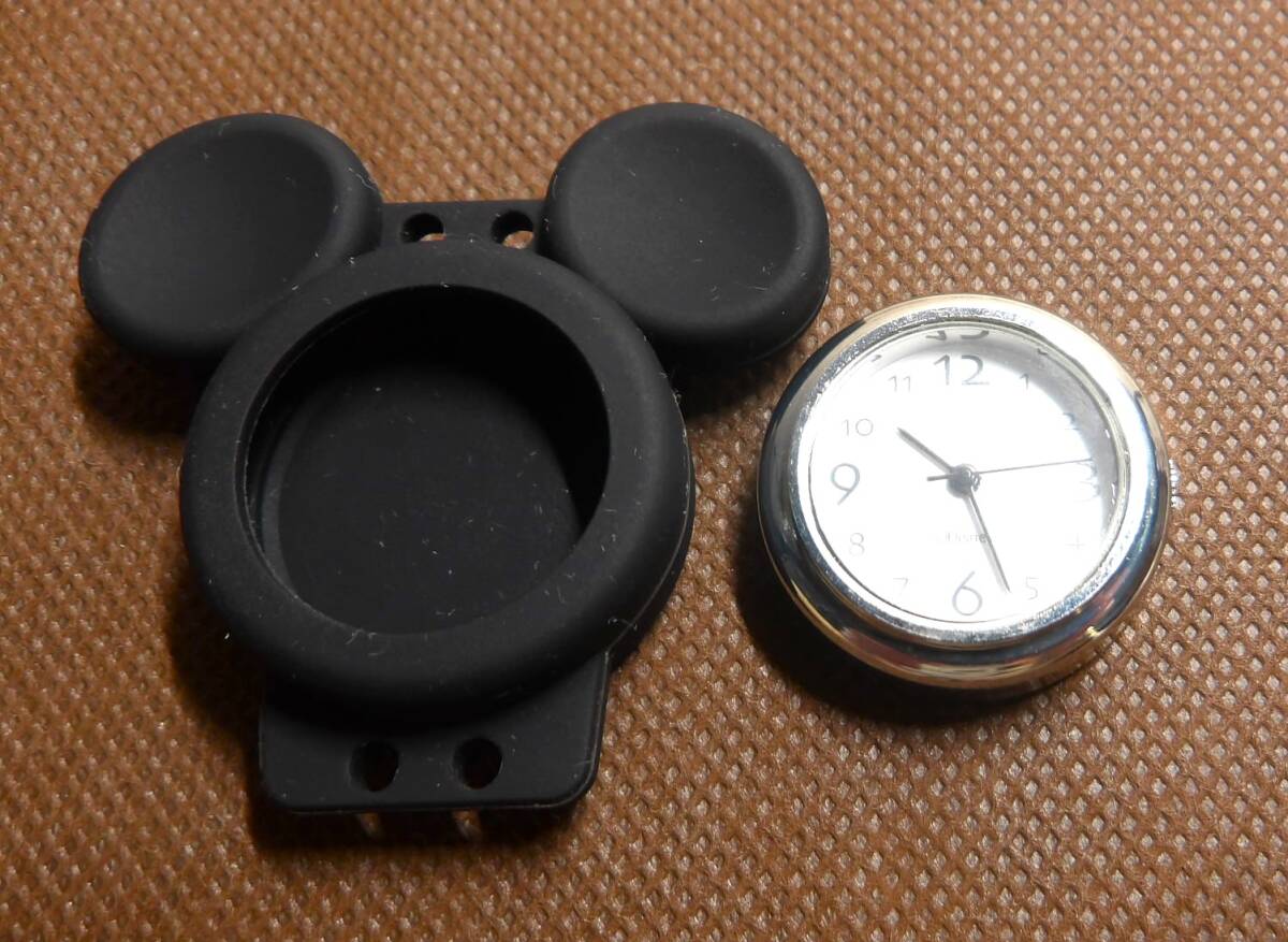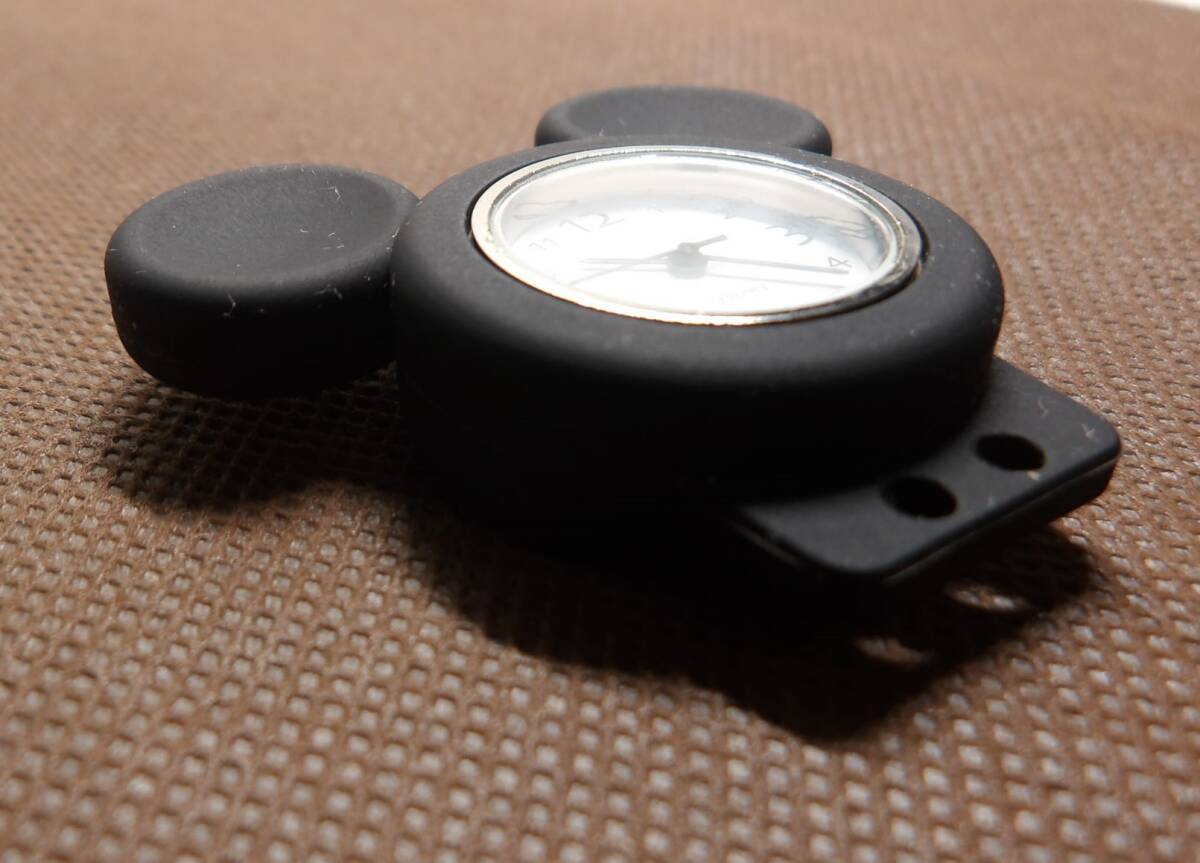 ミッキー型のシリコンカバーが付いたマスコット時計です。