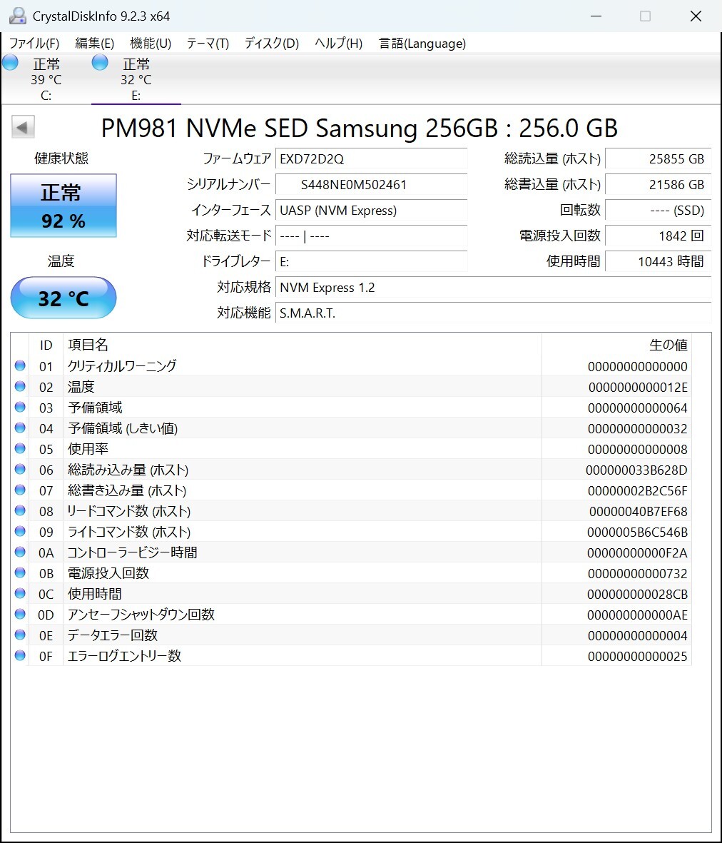 | ★☆1円 ~スタート☆SAMSUNG PM981 SSD M.2 2280 NVMe 256GB 使用時間:10443H☆★ | |