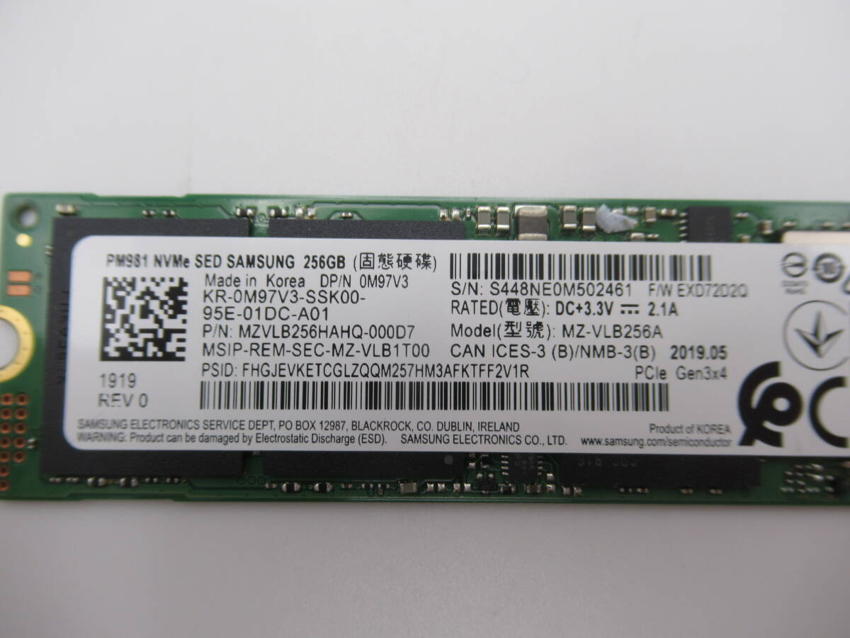 | ★商品説明★ | SAMSUNG PM981 SSD M.2 2280 NVMe 256GB 1枚 中古 動作確認済みです。 写真は現物です。写真にもご確認の上ご入札下さい。 中古品ですので使用感が御座います。動作確認済みですが、相性は保証いたしません。 適用機種はよくご確認した上で、ご入札くださいませ。 |
