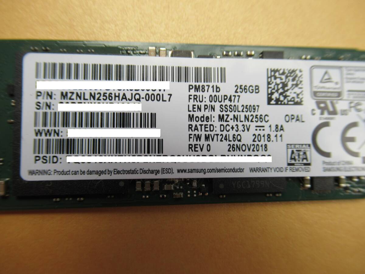 | ★商品説明★ | Samsung SSD PM871b M.2 2280 MZ-NLN256C 256GB 中古 動作確認済みです。 写真は現物です。写真にもご確認の上ご入札下さい。 中古品ですので使用感が御座います。動作確認済みですが、相性は保証いたしません。 適用機種はよくご確認した上で、ご入札くださいませ。 |