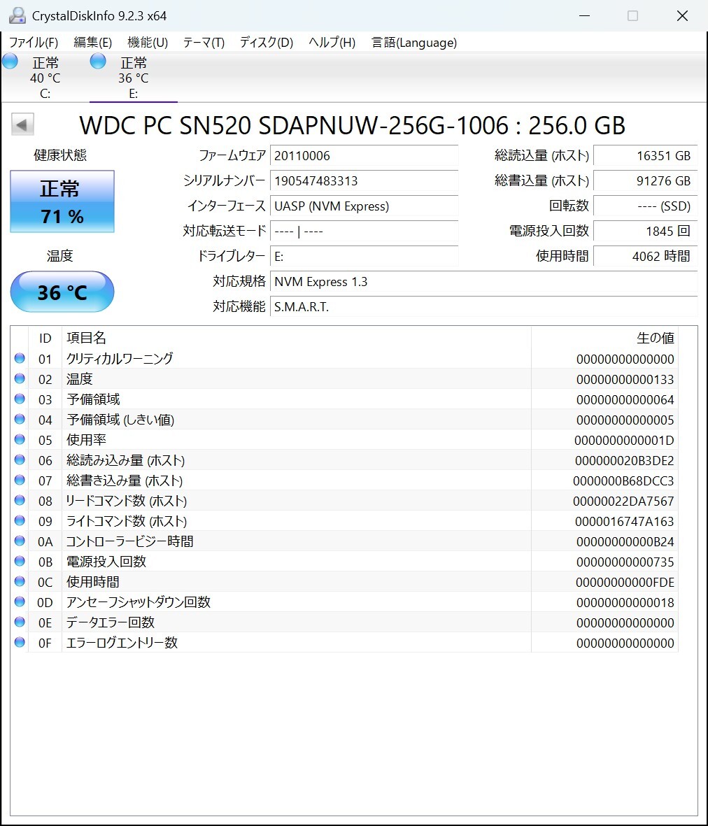 | ★☆1円 ~スタート☆WDC SN520 SSD M.2 2280 NVMe 256GB 使用時間:4062H☆★ | |