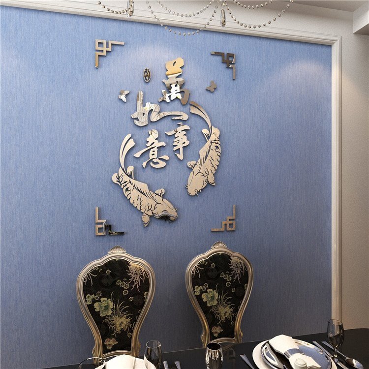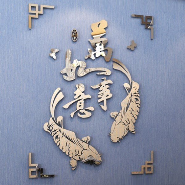 割れない鏡 和柄×鯉 デザイン ウォールデコレーションミラーステッカー 【シルバー】 鏡 シール インテリア 海外モダン