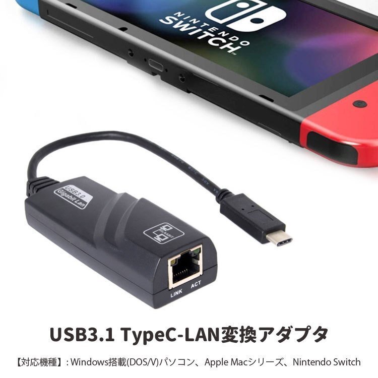 ◆Type-C TO RJ45 有線LAN変換 USB Type C イーサネットアダプタ USB-C LAN 変換 高速1000Mbps ドライバー不要 Switch MacBook Windows Thunderbolt3 スマホに対応 Switch対応 TPC2RJ5