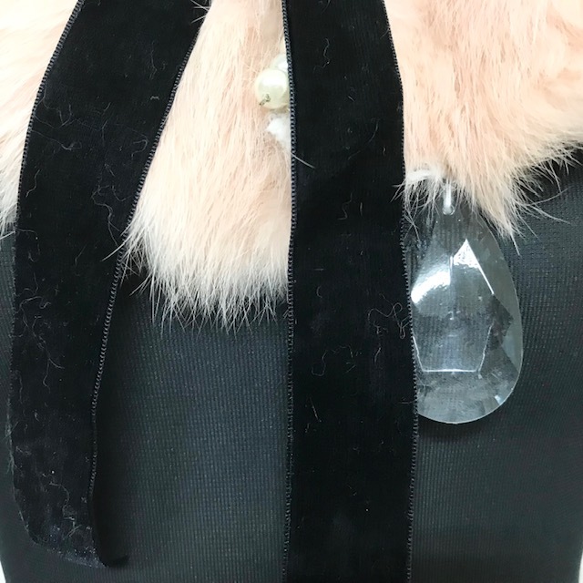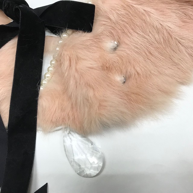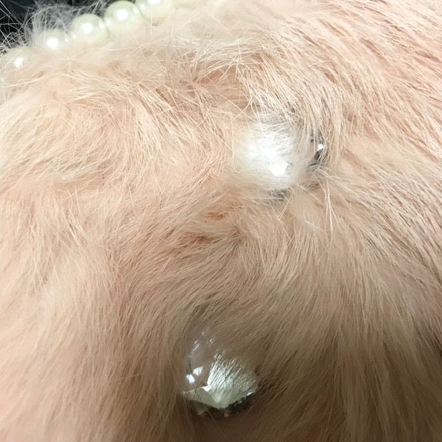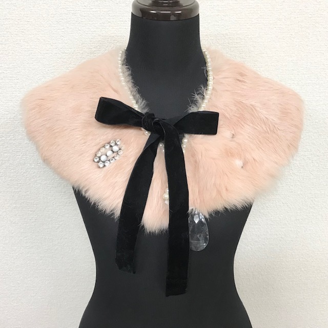 | 未使用★パールビジュー付きラビットファー付け襟 ファー ティペット リボン 襟巻き | |