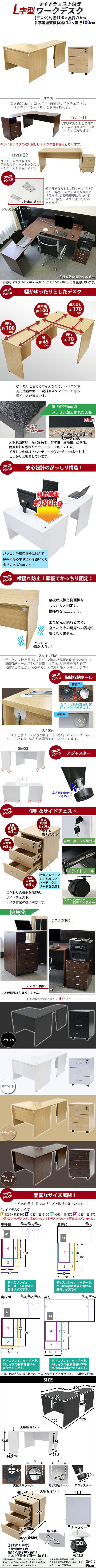 | 商品サイズ | ■本体寸法・・・L字型デスク:W約100×D約170×H約73.5(cm) サイドチェスト:W約40×D約48.5×H約55.5(cm) ■梱包寸法(3個口)・・・デスク:W約110×D約80×H約12(cm) サイドデスク:W約70×D約107×H約12(cm) サイドチェスト:W約47×D約56×H約52(cm) |