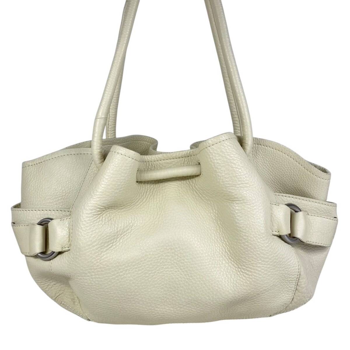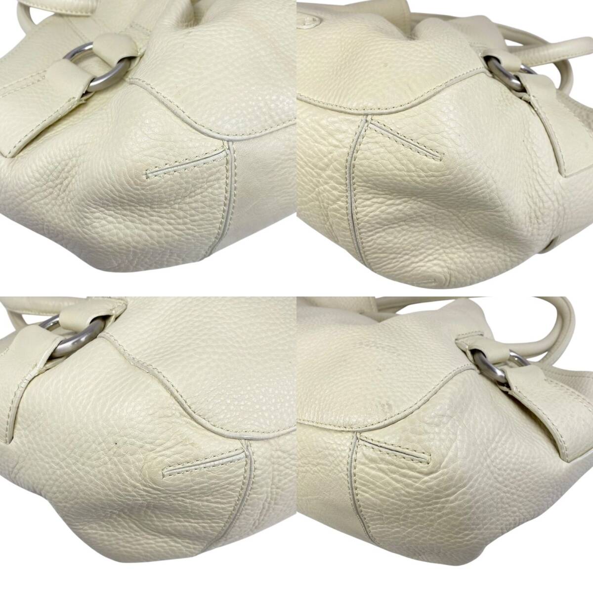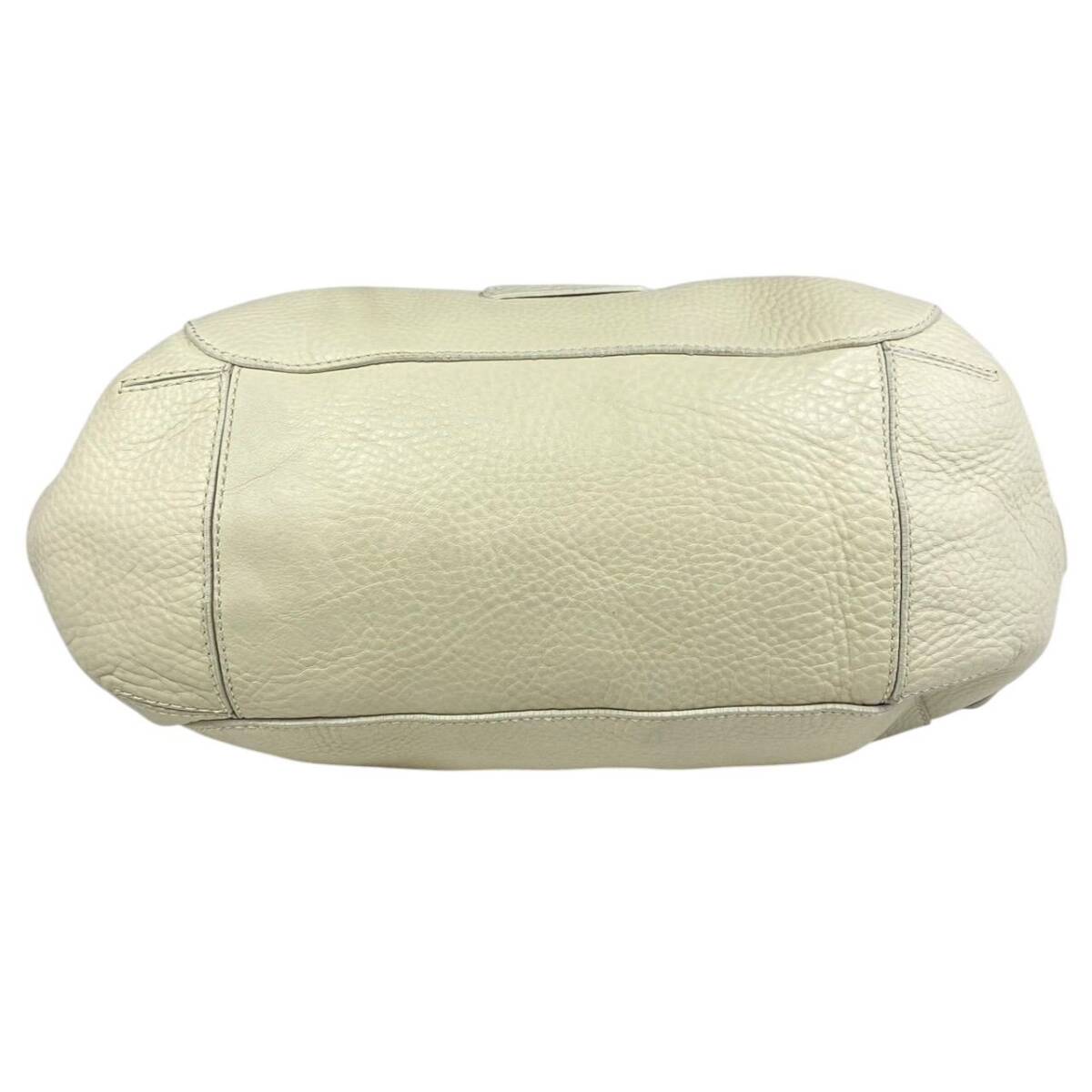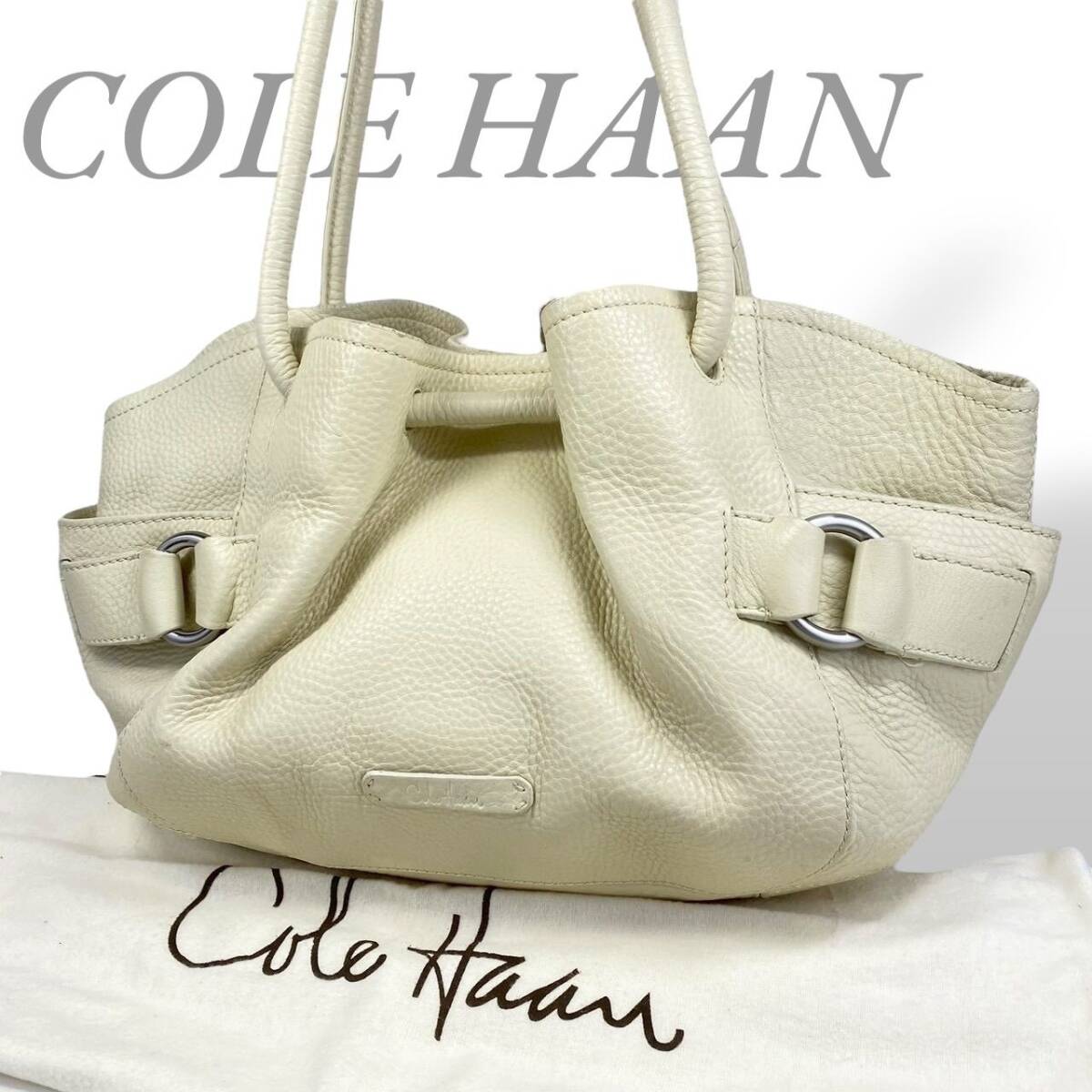 【B3964】COLE HAAN コールハーン トートバッグ レザー シボ革 オフホワイト レディース 保存袋付 大容量 肩掛け シンプル