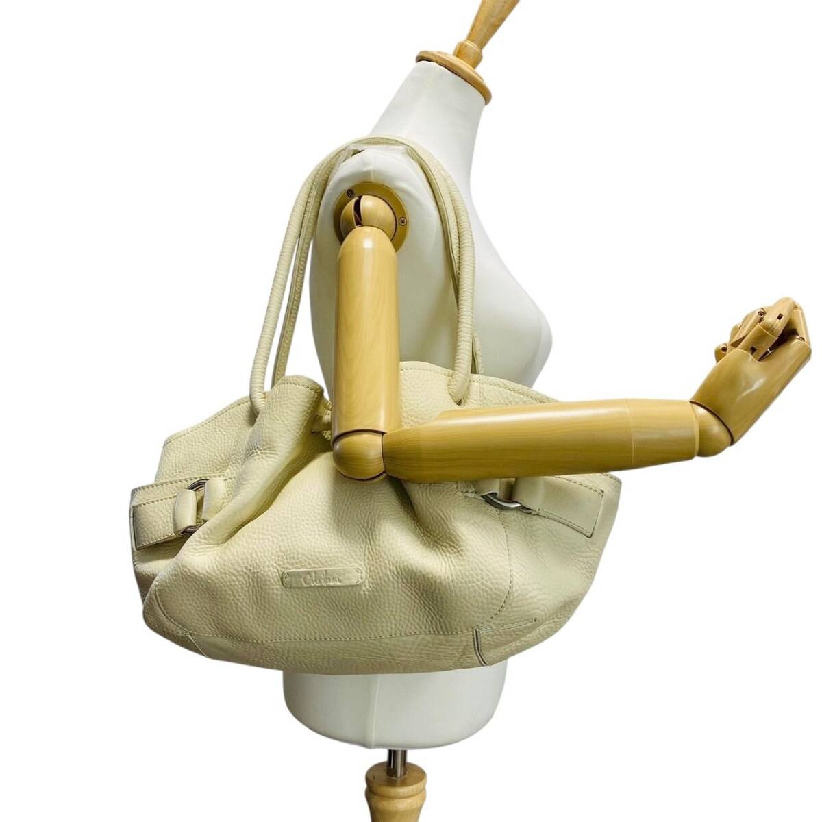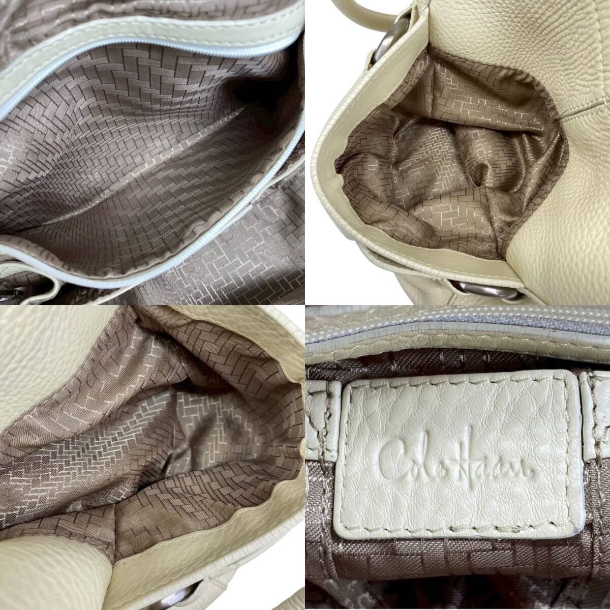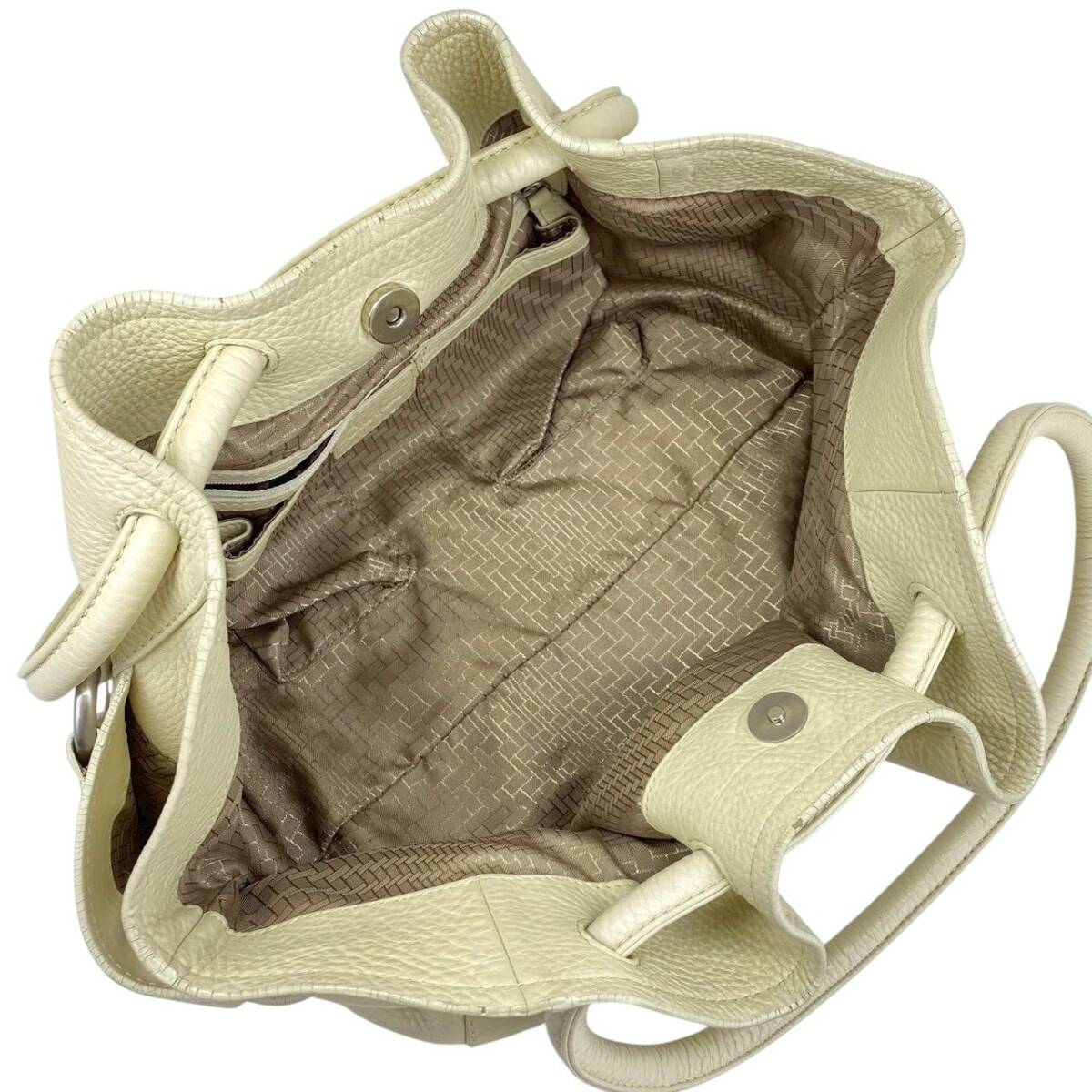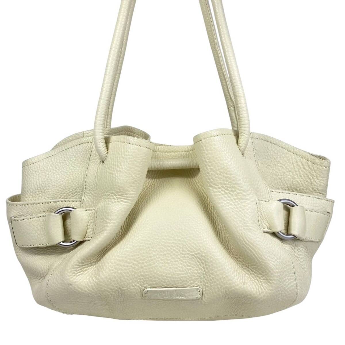 【B3964】COLE HAAN コールハーン トートバッグ レザー シボ革 オフホワイト レディース 保存袋付 大容量 肩掛け シンプル