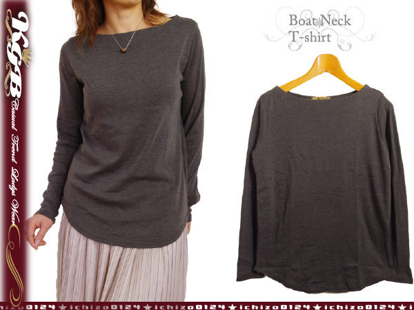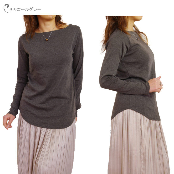 L チャコールグレー Tシャツ 長袖 レディース ボートネック レディース コットン 綿混 ロンT カットソー 無地 新品