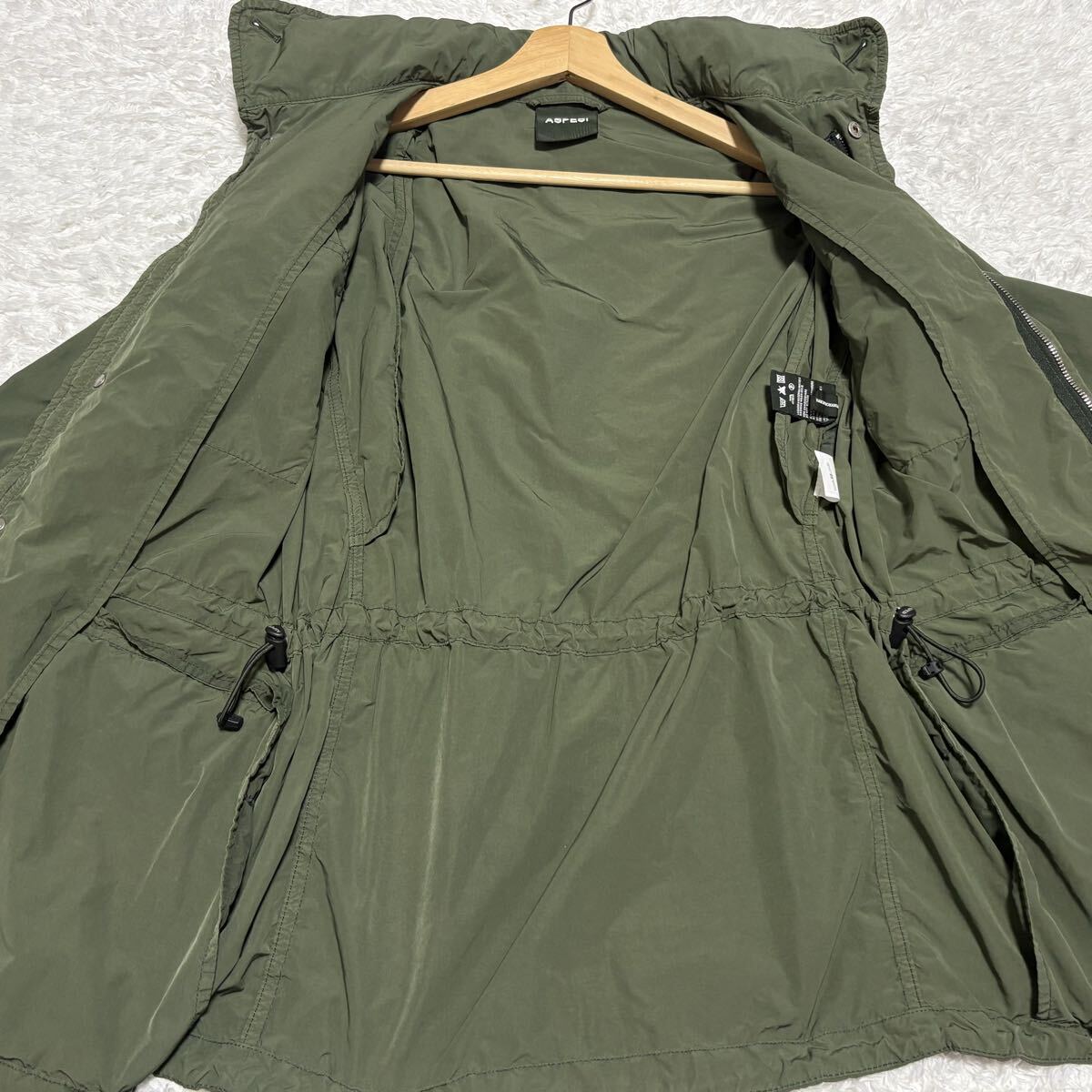 ミリタリーウェアをベースにしながらも、アスペジらしい上品で都会的な雰囲気を漂わせます。