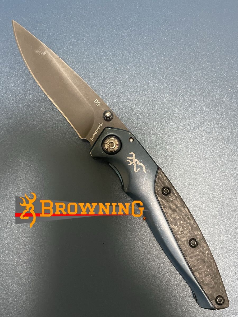 Browning 0354 Carbon Carry Framelock Knife Blue Handles