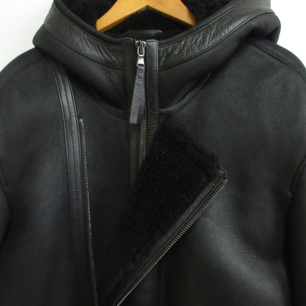 ディーゼルブラックゴールド DIESEL BLACK GOLD リアルムートン W-ZIP レザージャケット フード付き 羊革 スエード コート 黒 ブラック