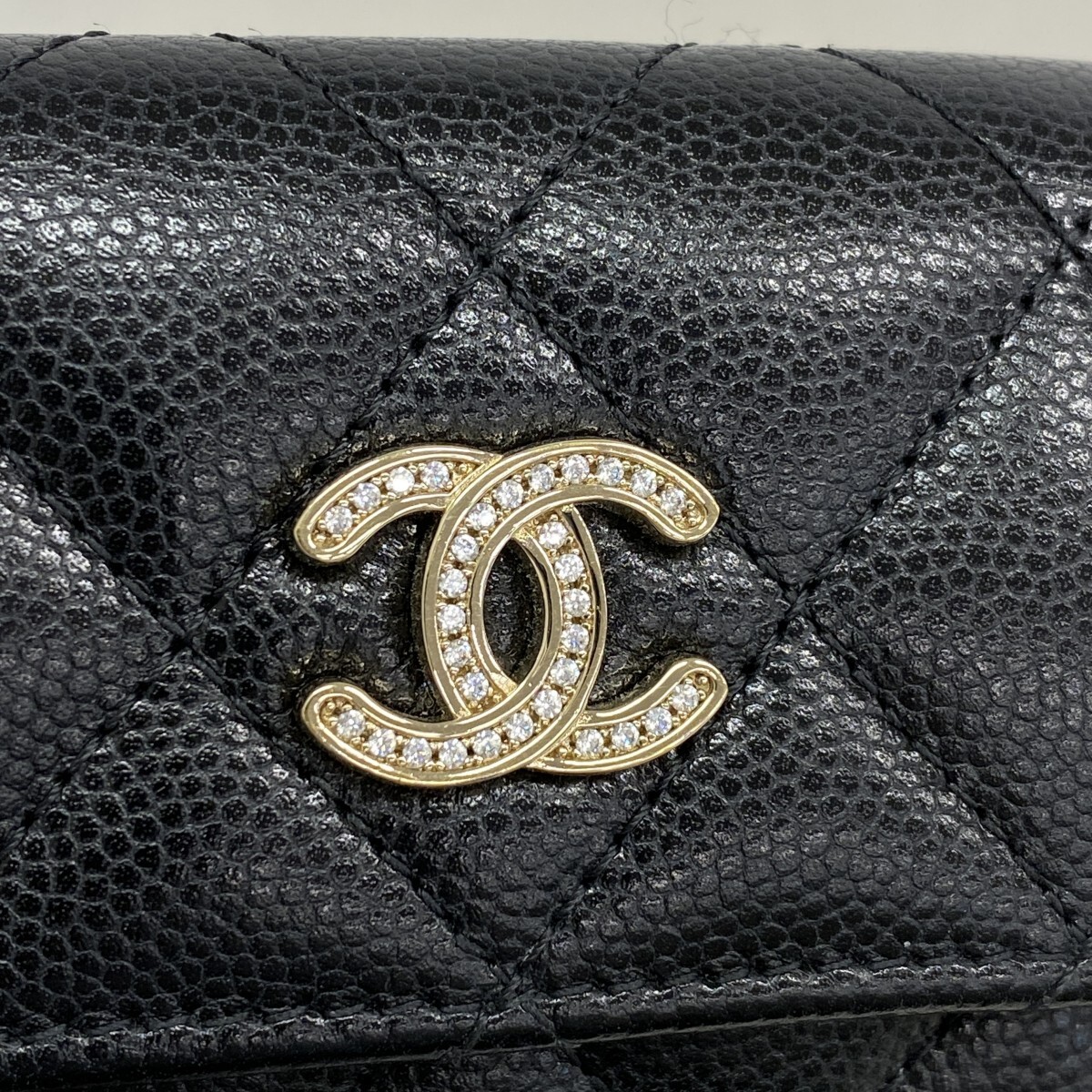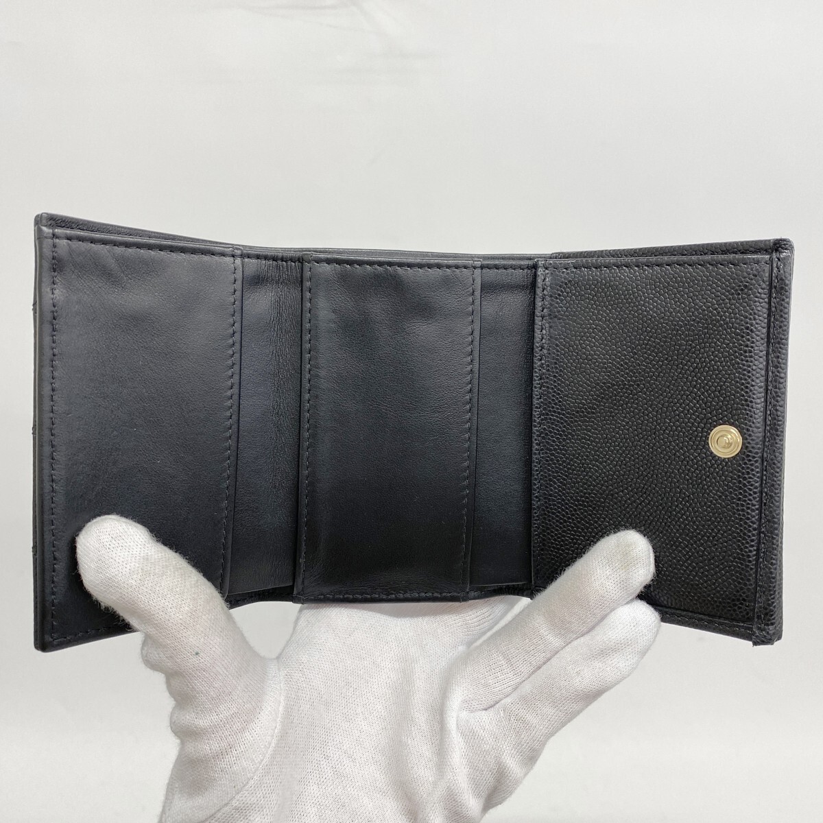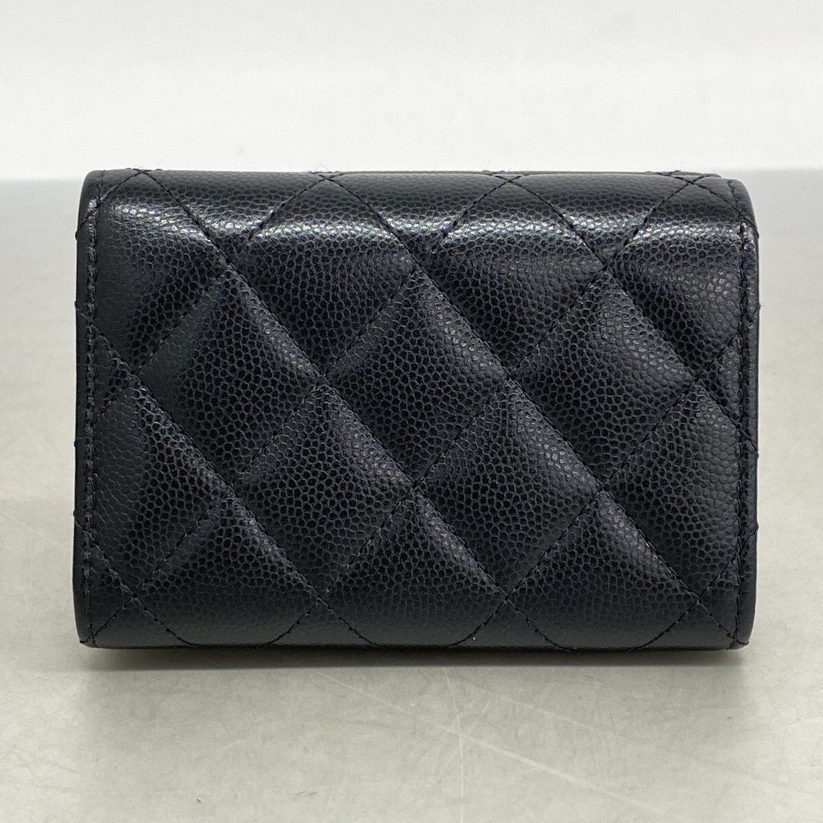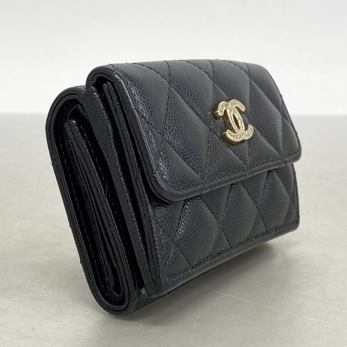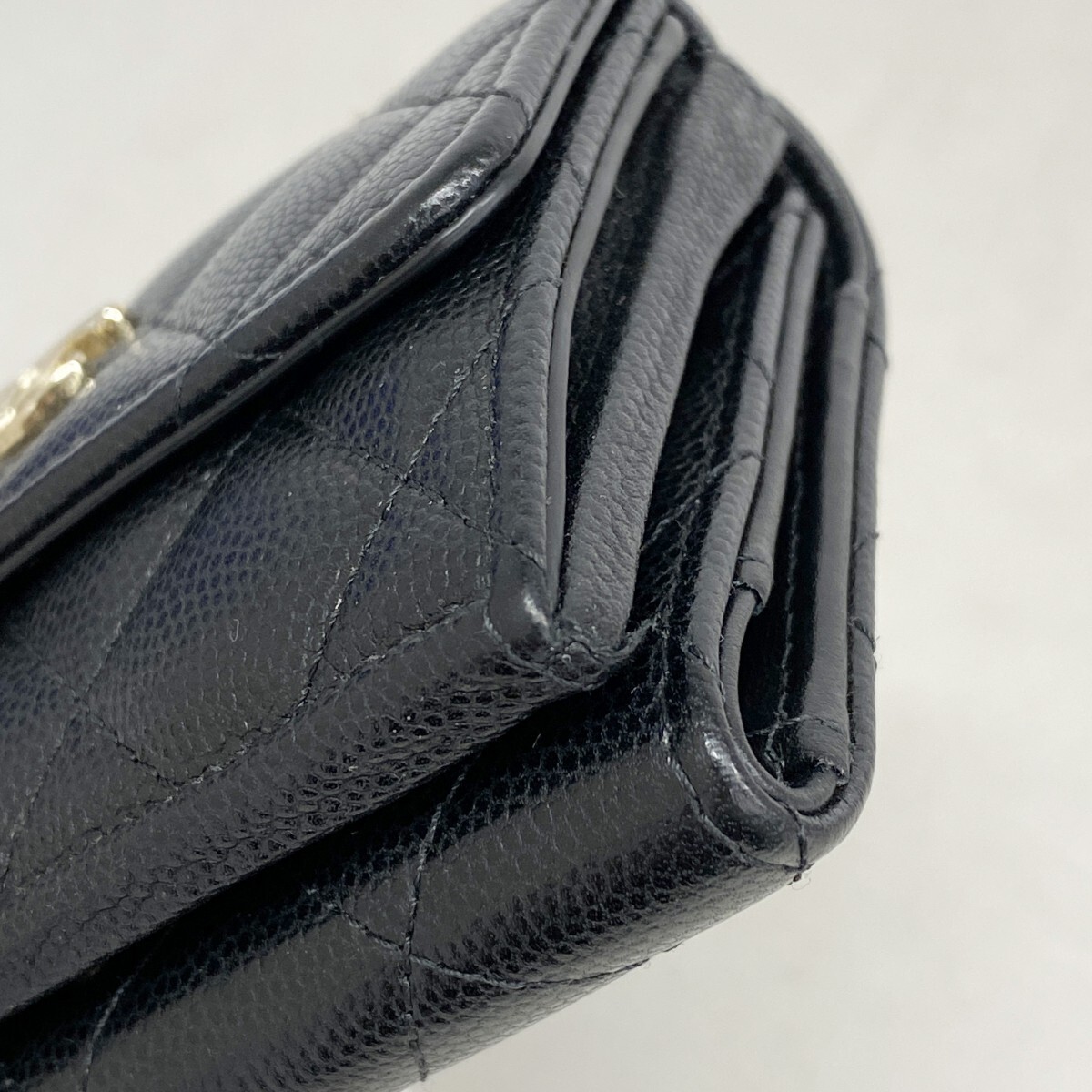 ★最終価格【5mc3300-h】シャネル 三つ折り財布 マトラッセ キャビアスキン ブラック シャンパンゴールド金具【中古】レディース