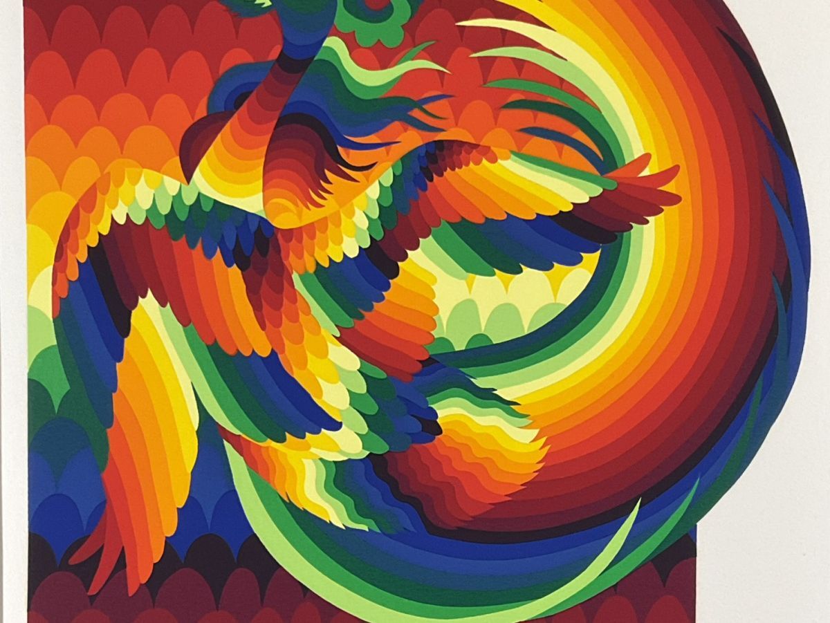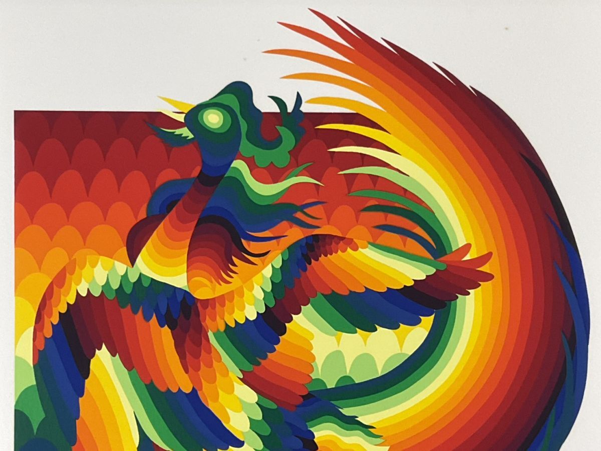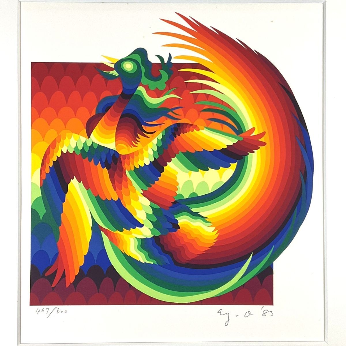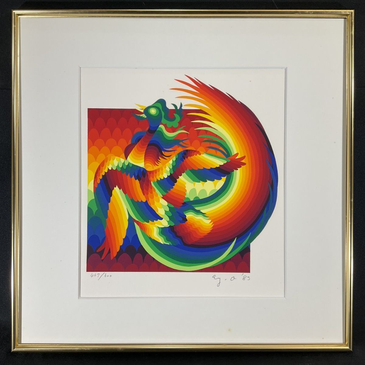 真作■シルクスクリーン■Ay-O/靉嘔・アイ・オー■『鳳凰Ⅲ』■1983年■淡色希少図柄■人気作家■額付絵画