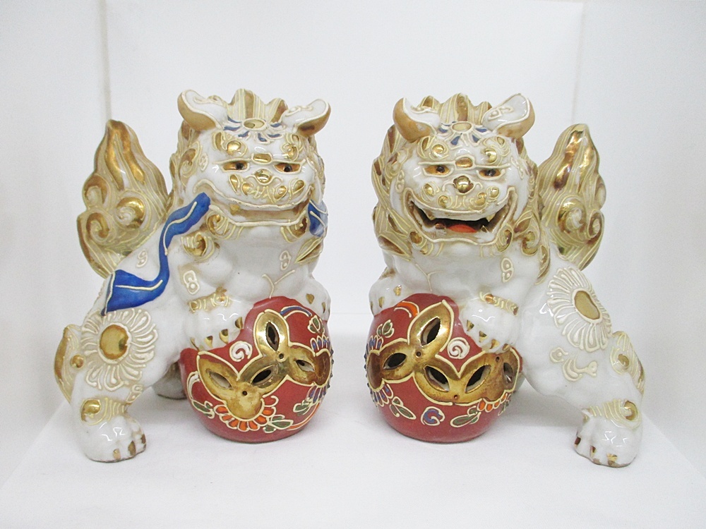 九谷焼 玉獅子 2体セット