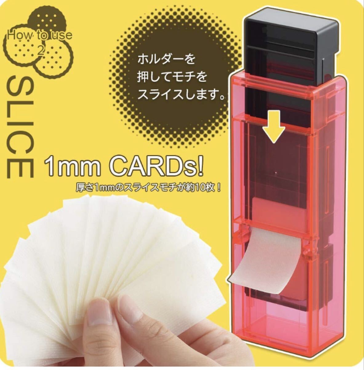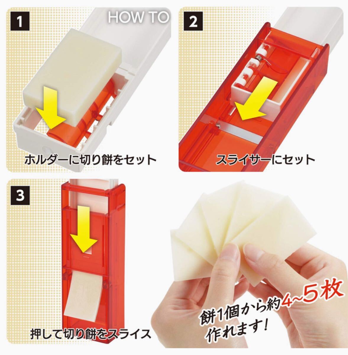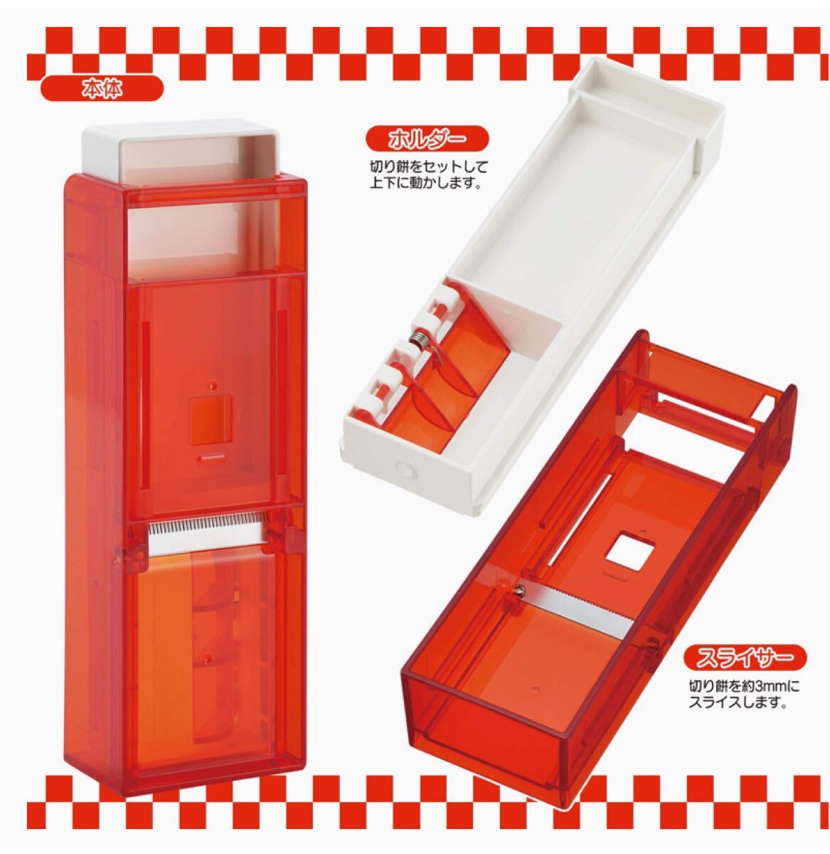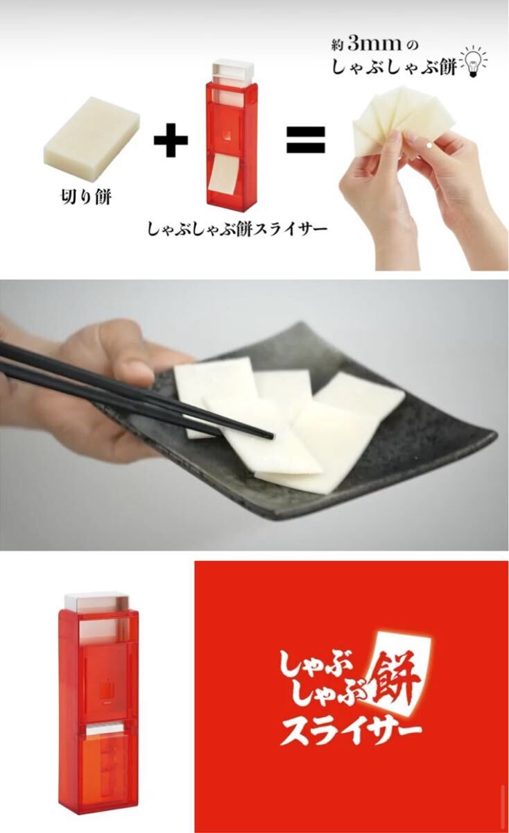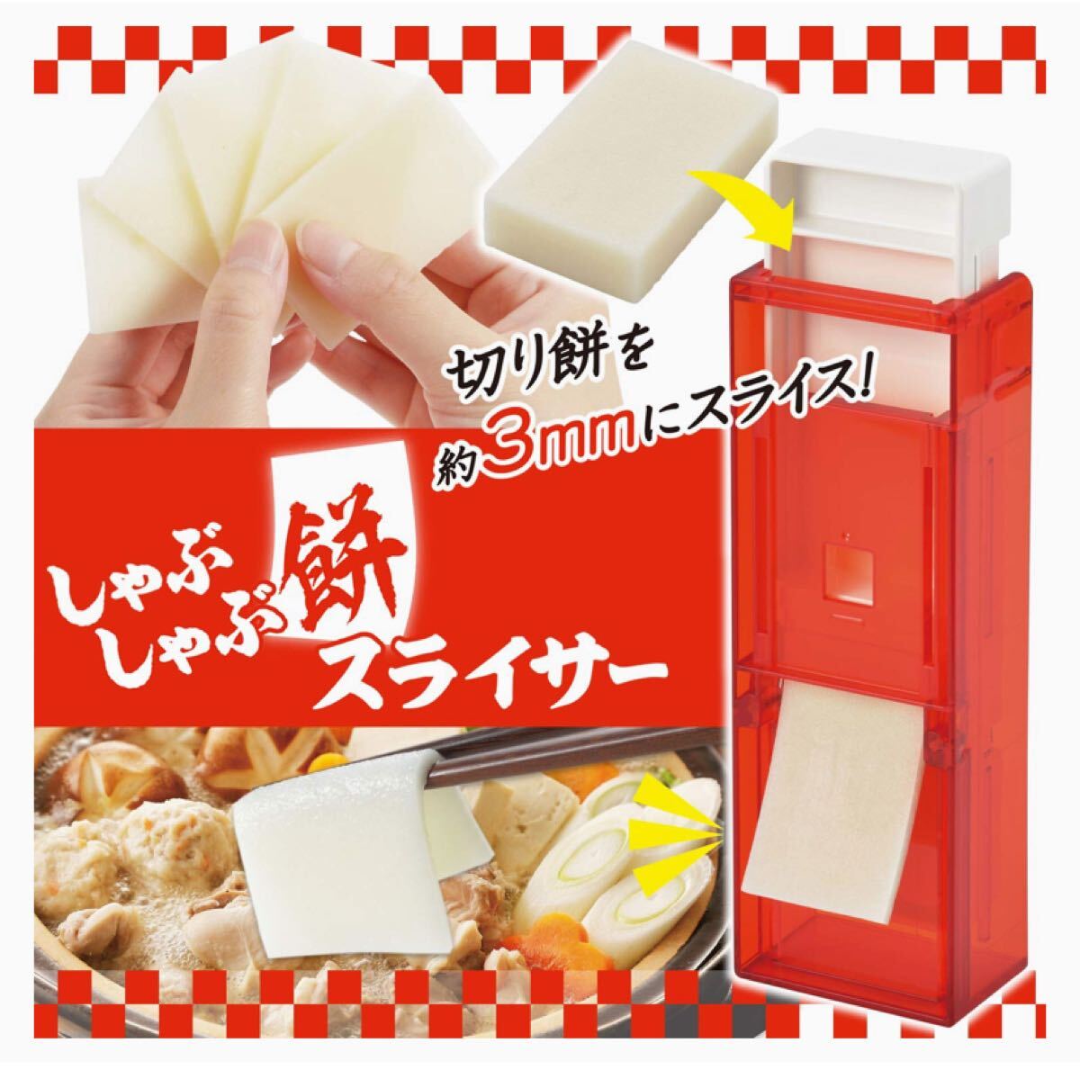 切り餅を約3mmにスライスできます。 餅1個から約4~5枚作れます。 鍋料理、しゃぶしゃぶ、うどんやお好み焼きに。