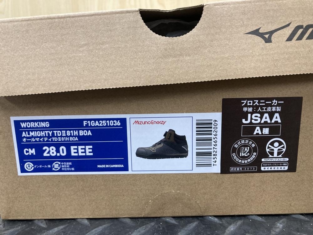 ミズノ ■商品名 安全靴 オールマイティ ■型番 TDⅡ81H BOA F1GA251036 |