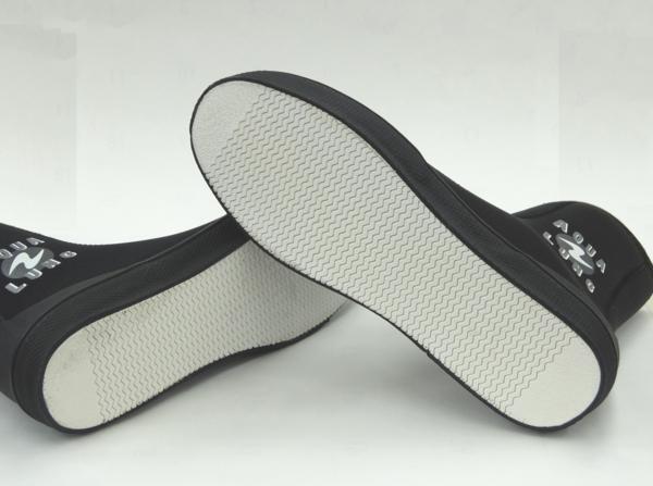 ![]() | 4mm厚ネオプレーン、表裏ジャージであたたかく、内側に着脱を助けるファスナー付き、ヨット(ボート)のデッキが濡れていても滑りにくいノンスリップデッキソール。 |