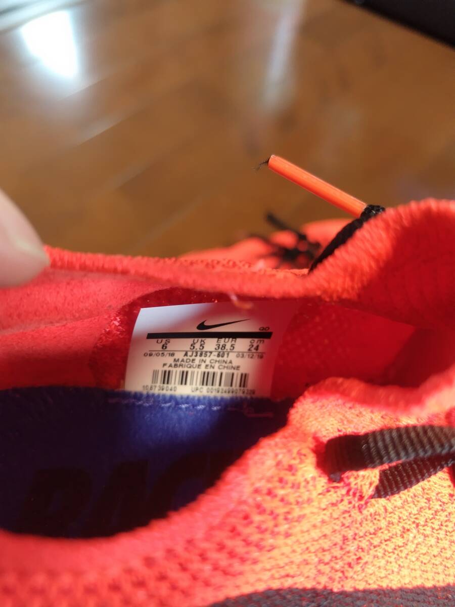 ナイキ ベイパーフライ中古になります。 サイズは24.0センチ ○状態 レースのみ使用で5キロの2回の使用でランニングを引退し下駄箱で保管していました。まだまだこれから使える状態です。 ソールの汚れはありますがシューズ自体の汚れはほとんどありません。 ○発送方法 簡易包装又は他の箱に入れて発送させていただきます。 ○その他 中古の為、神経質な方は入札お断りもします。