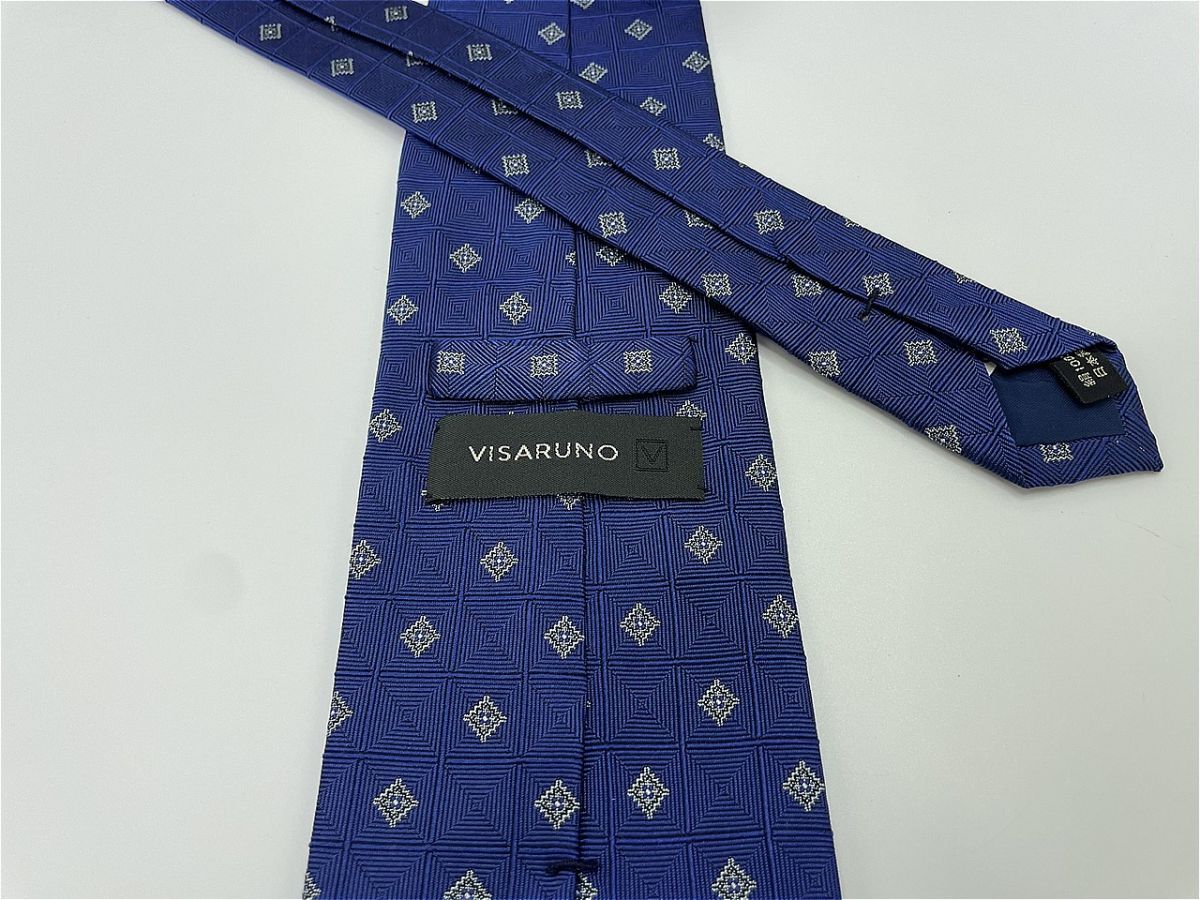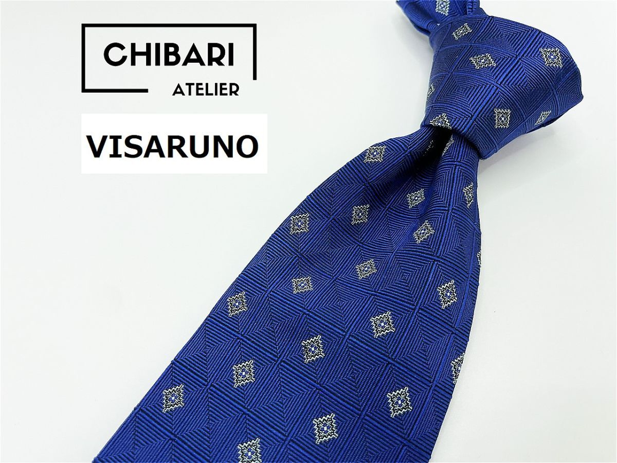 【美品】VISARUNO ヴィサルノ ドット&チェック柄 ネクタイ 3本以上 送料無料 メンズ ブルー 1002098