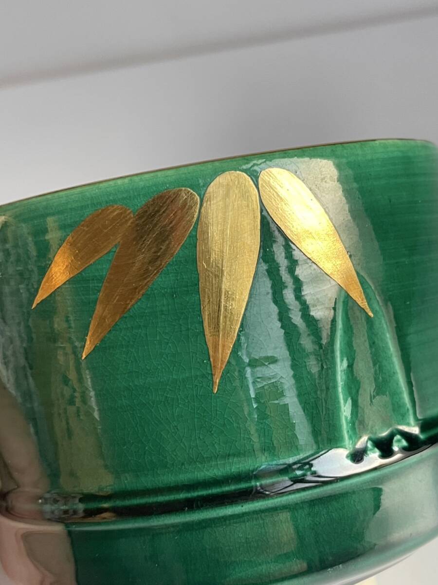 【和味】通次阿山造 青竹 茶碗 共箱 茶道具 本物保証 014