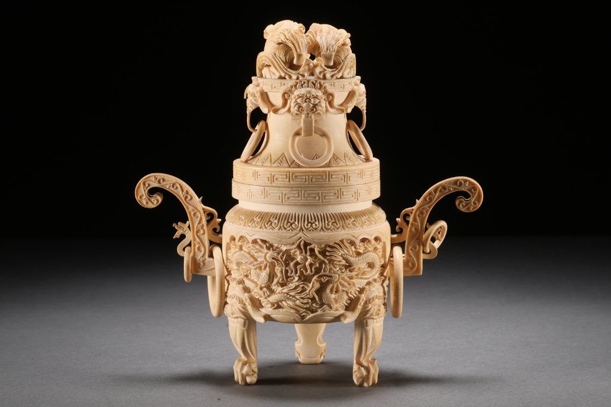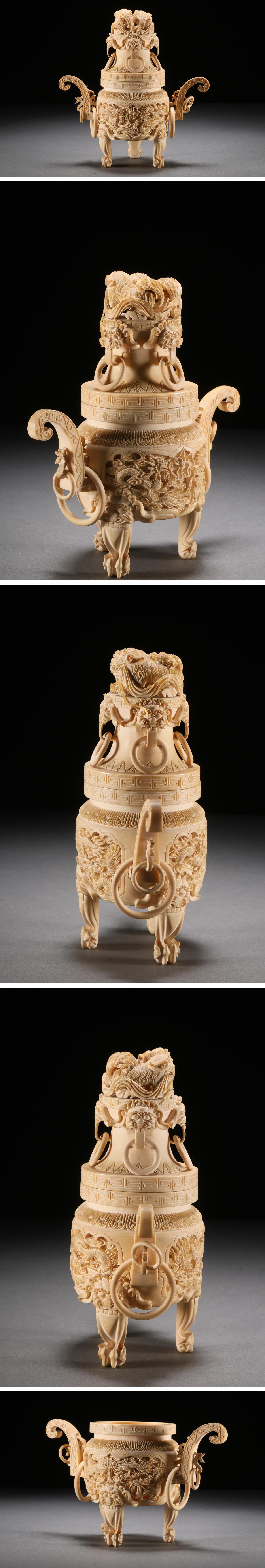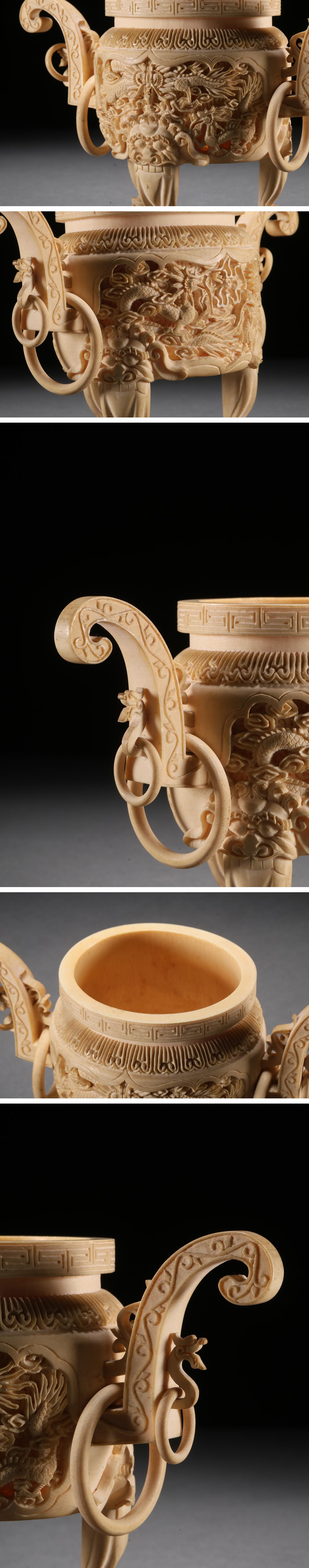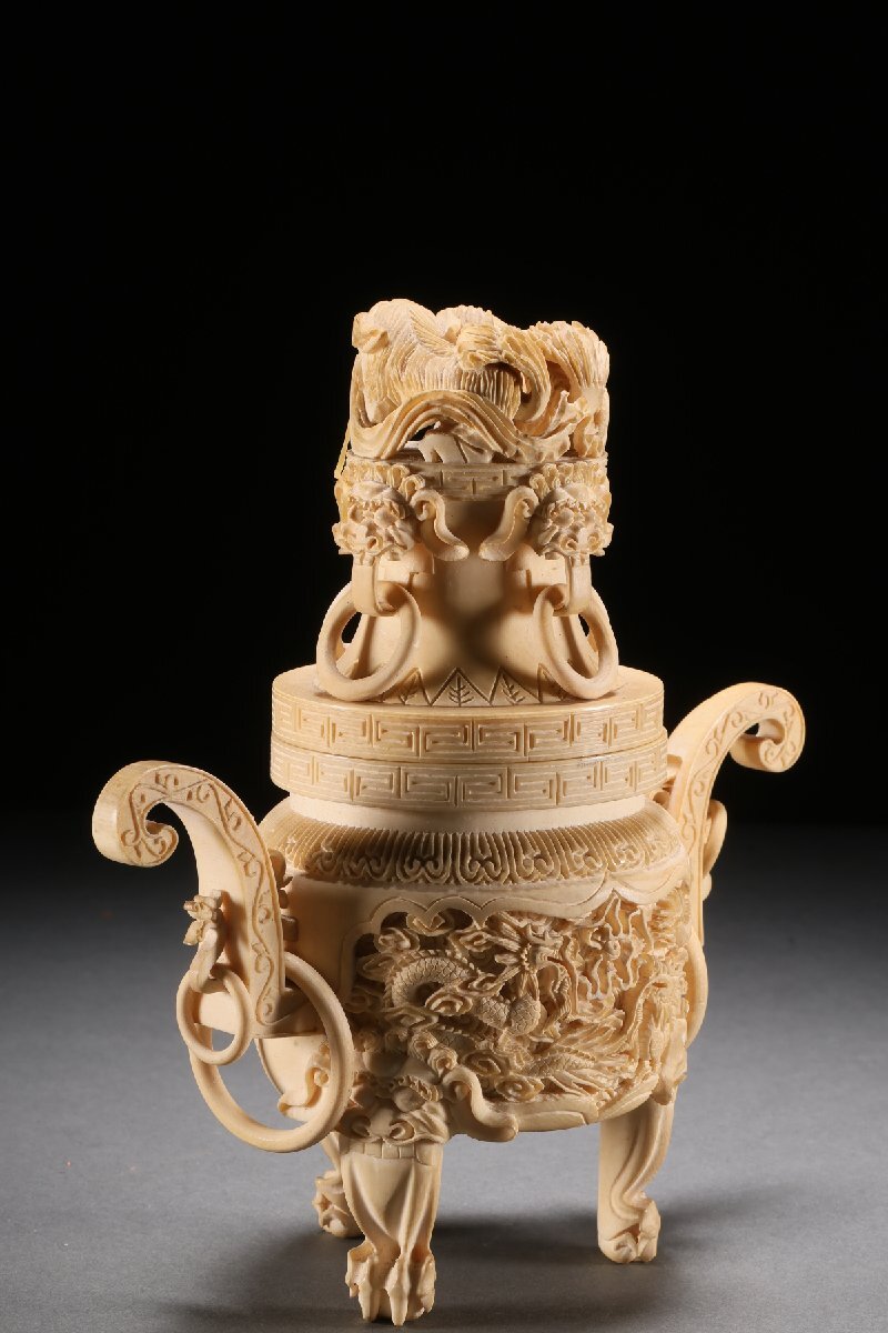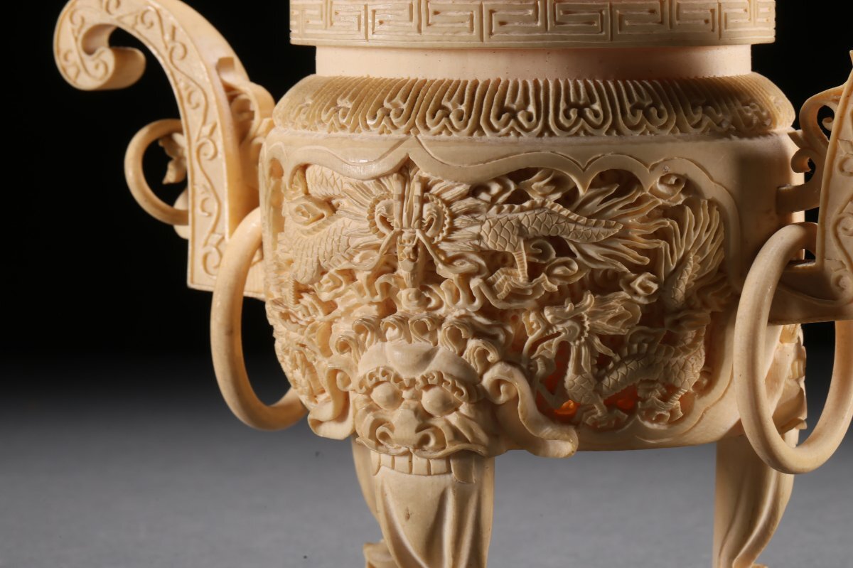 【雲錦】某有名オークション買入 時代物 特殊白材 雲龍文香爐 骨董品 古美術Z-41S4