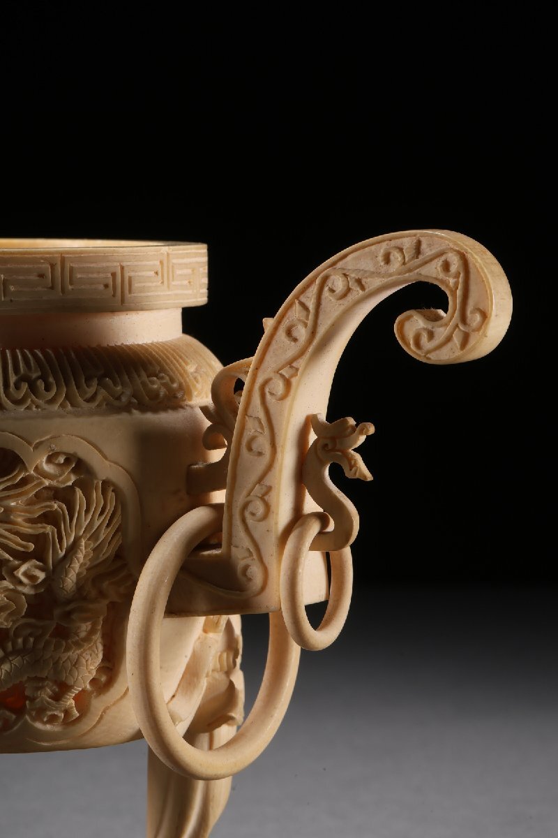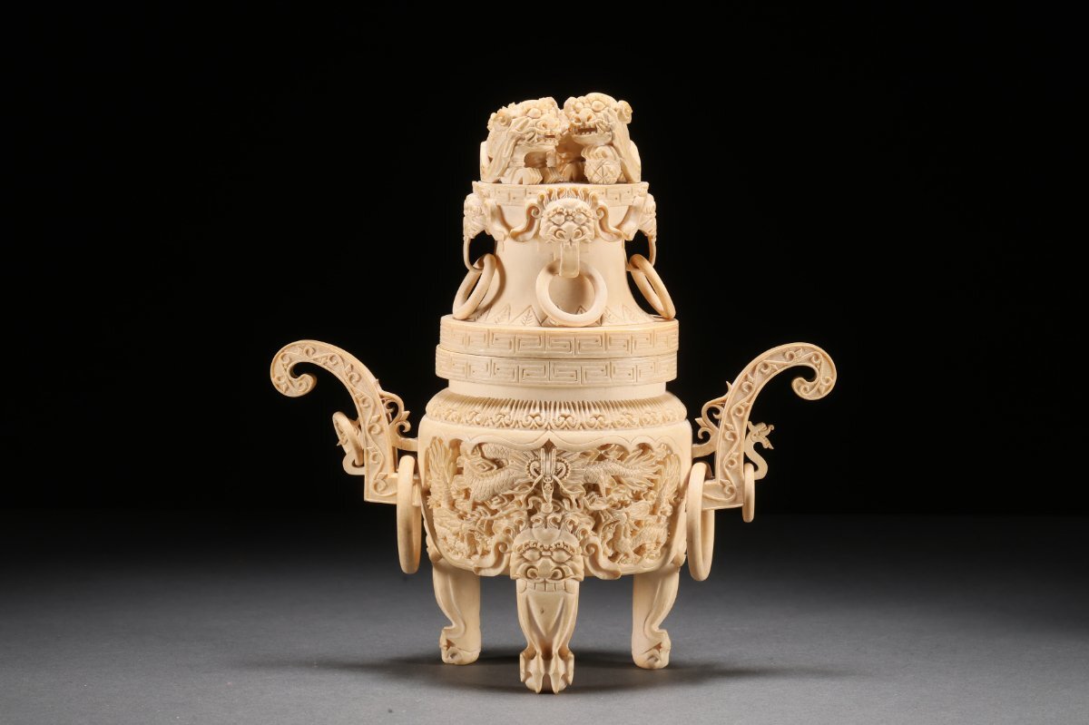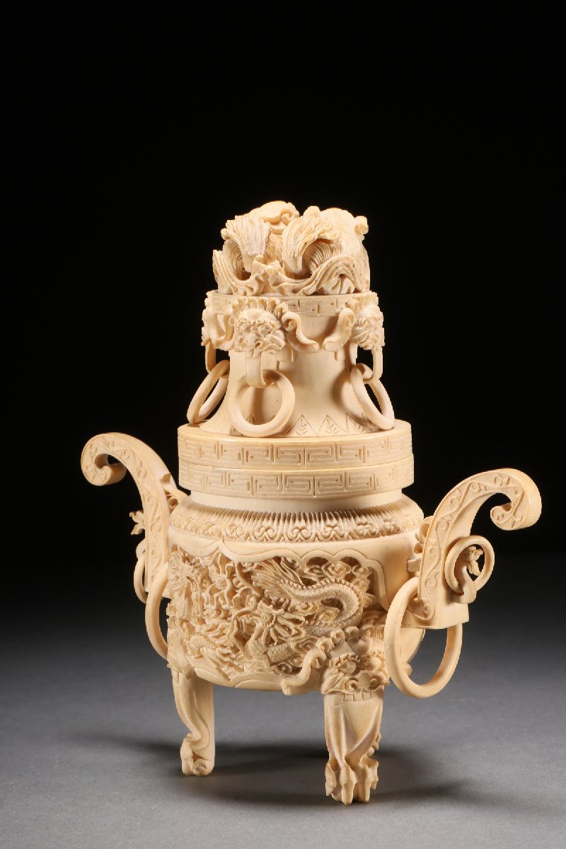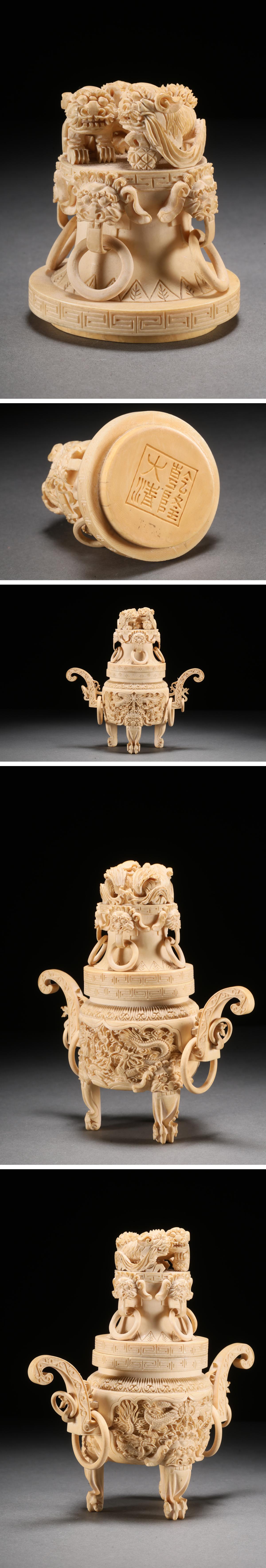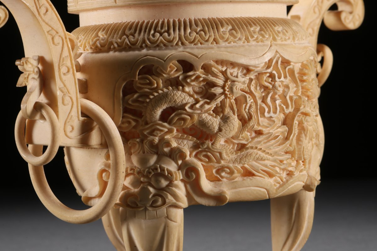 【雲錦】某有名オークション買入 時代物 特殊白材 雲龍文香爐 骨董品 古美術Z-41S4