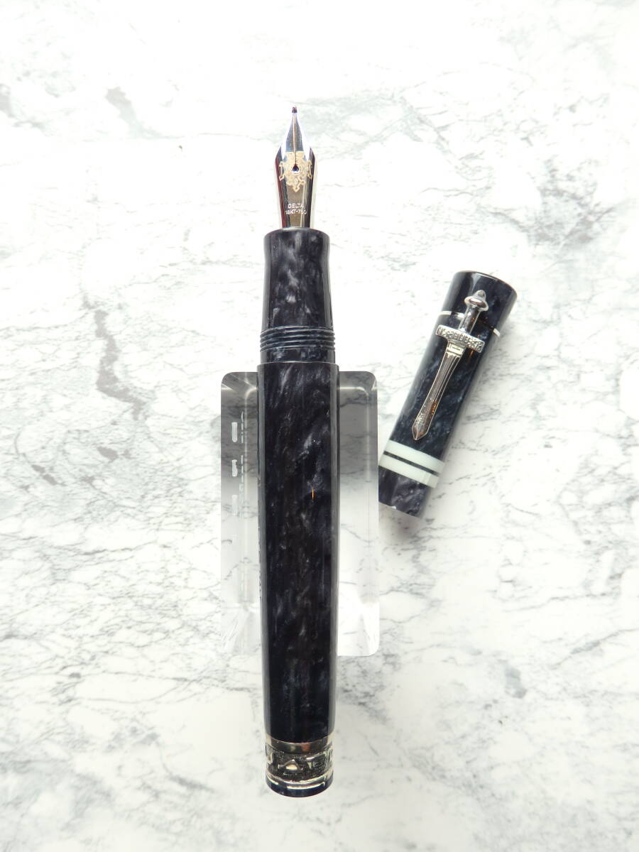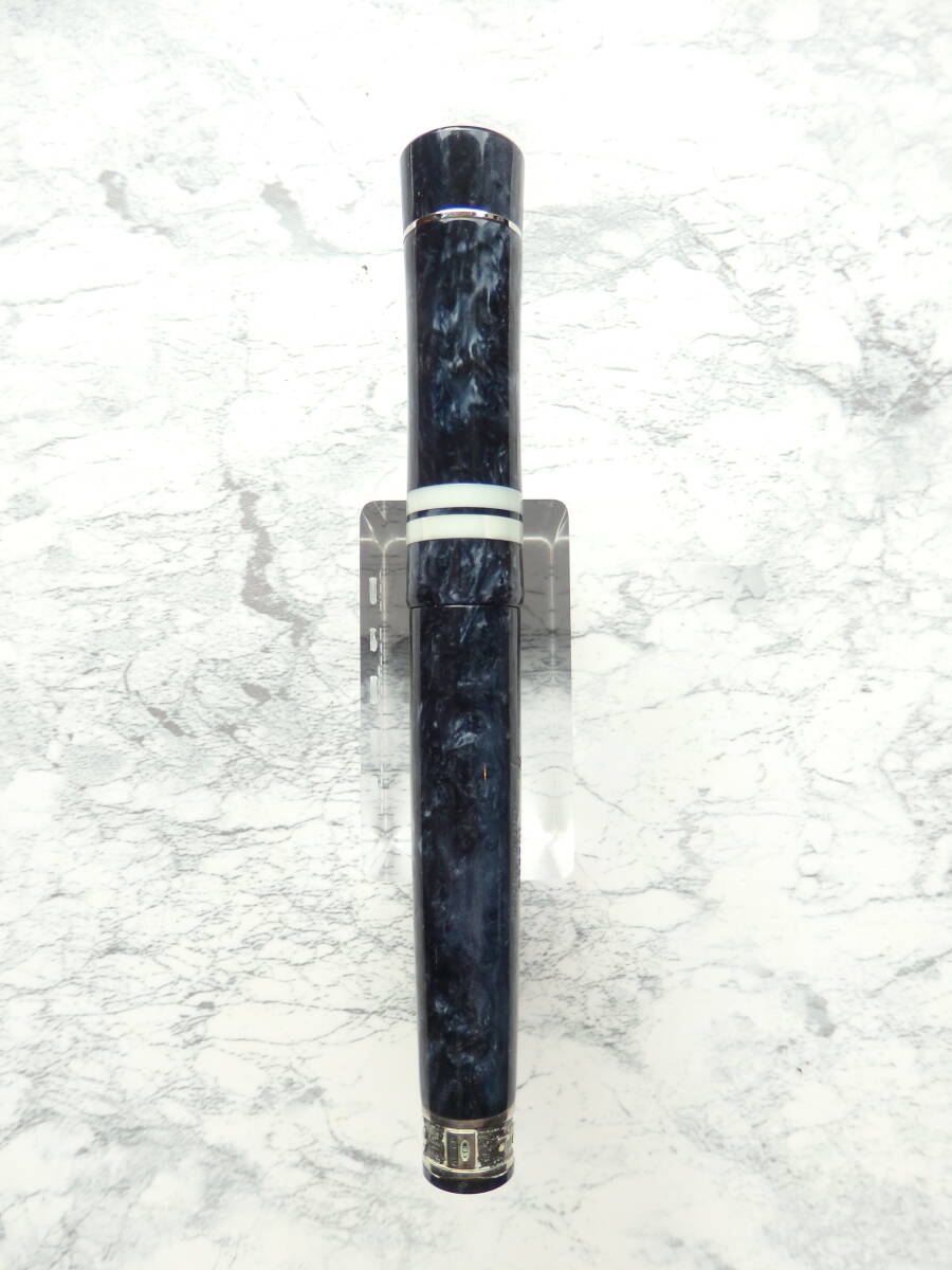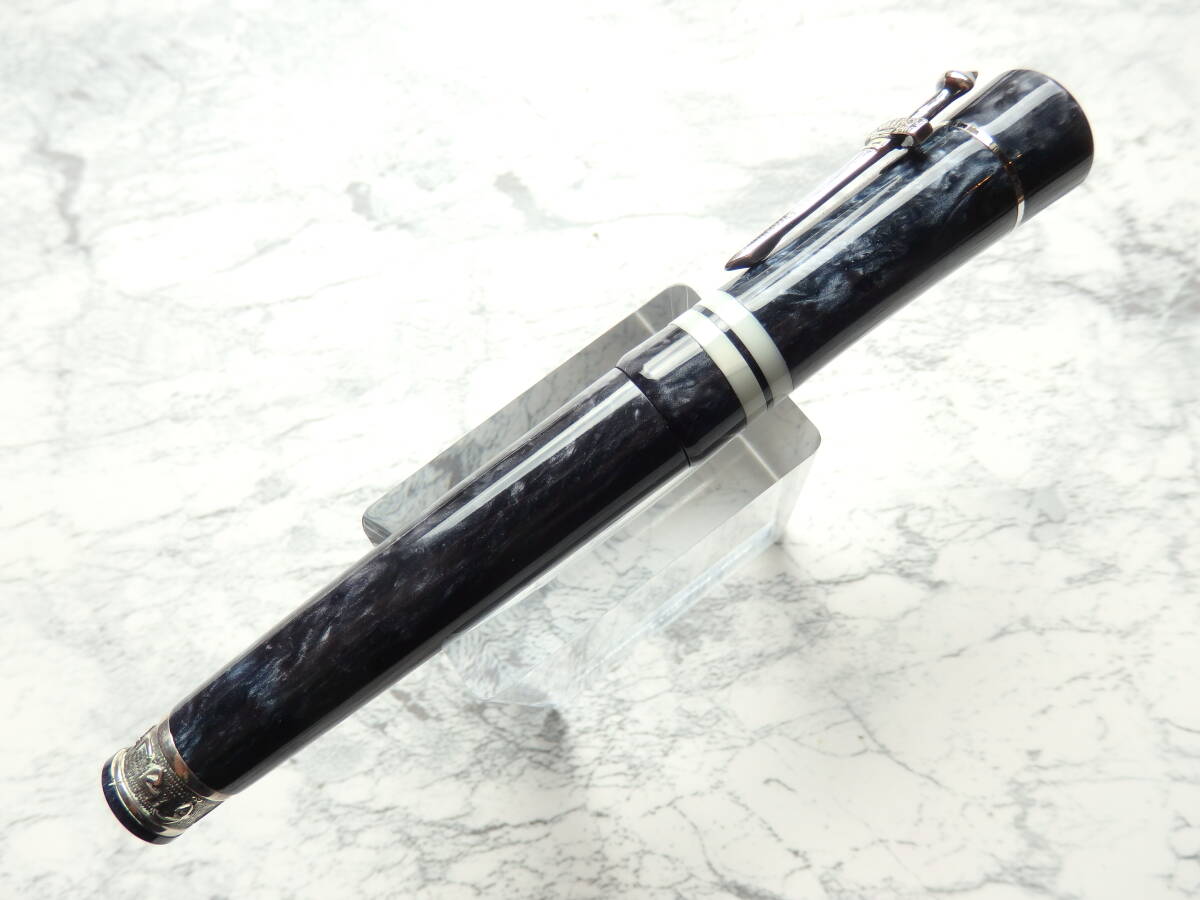 「青の民」と呼ばれる彼等をイメージしたこの万年筆は、グレイブルーのソリッドレジンを削りだして仕上げた深いブルーの軸が印象的です。