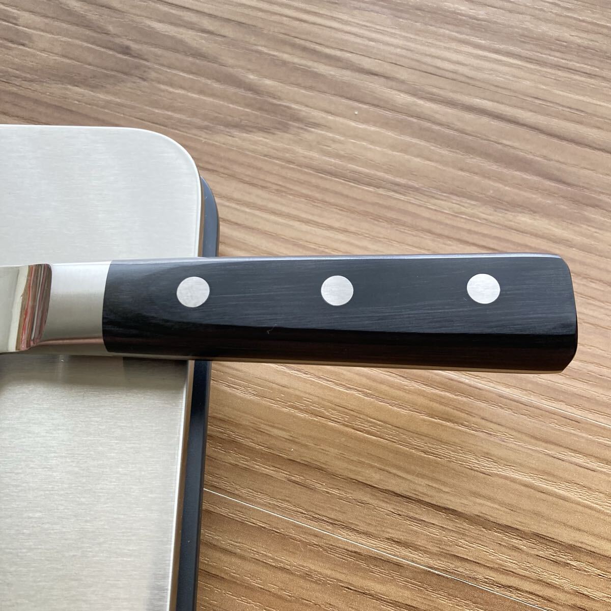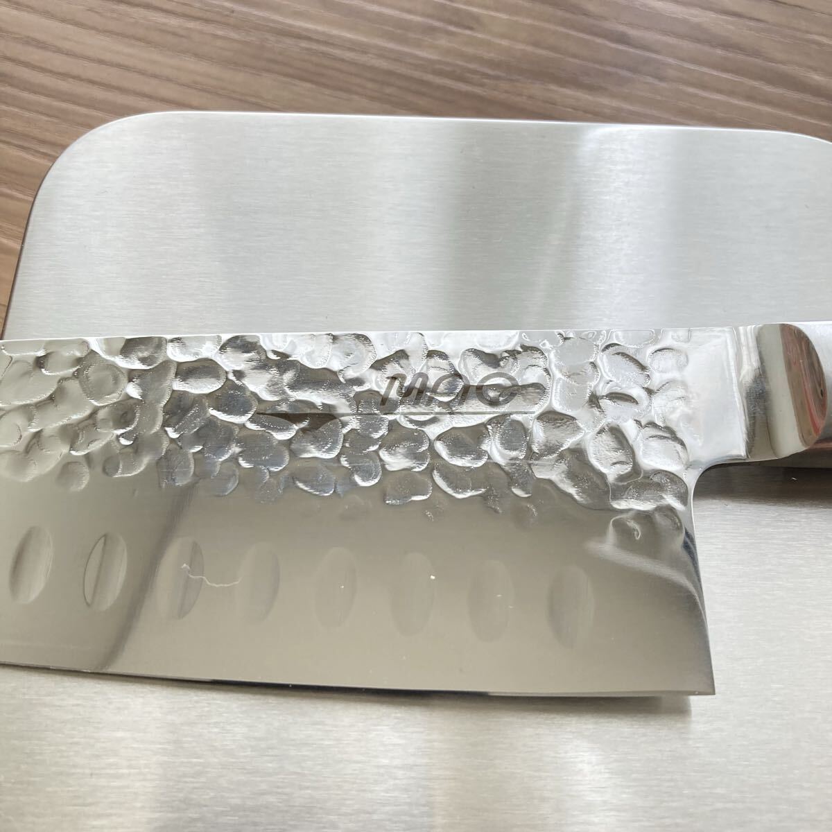極薄の刃とサーモン型と呼ばれる貼り付きを軽減するくぼみの組み合わせ両得の包丁です。