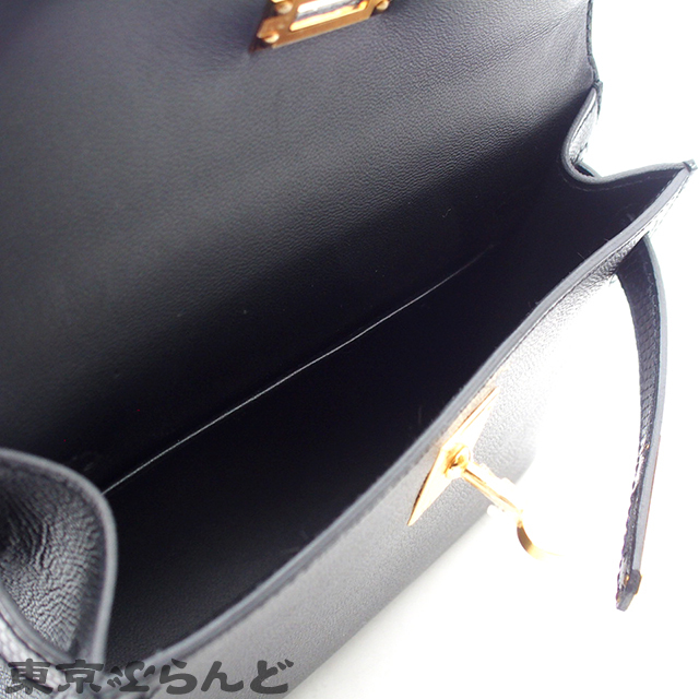 101826841 エルメス ミニ ケリー 2 タッチ W刻印 ブラック ゴールド金具 エプソン リザード 2way ショルダーバッグ ハンドバッグ 未使用