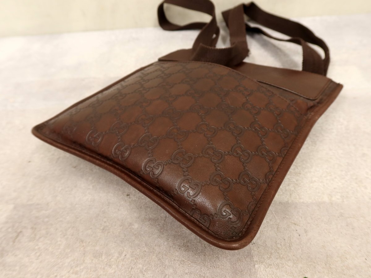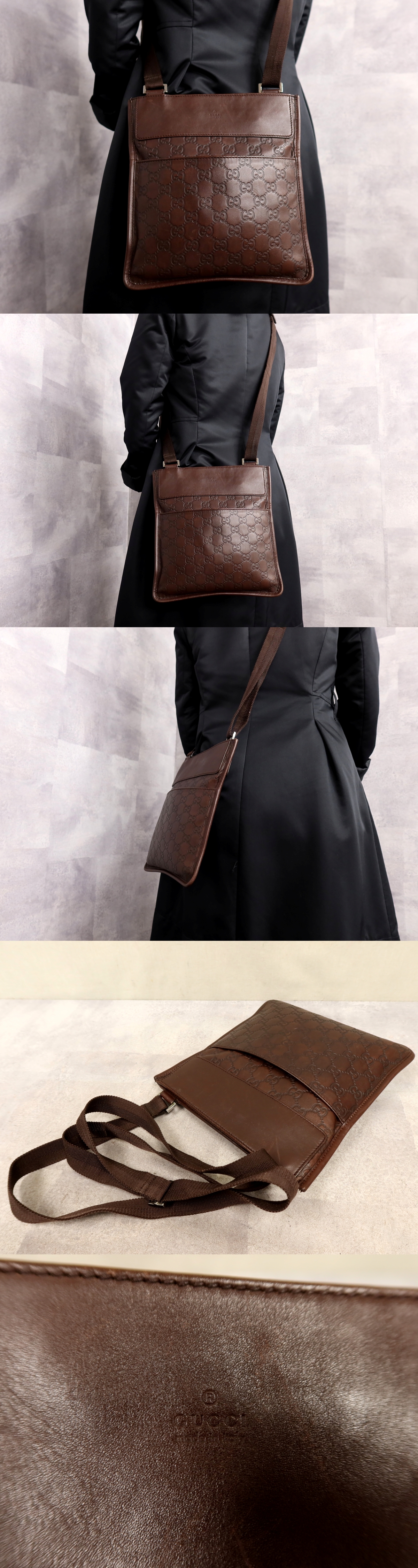 ●超美品●GUCCI グッチ●メンズ●グッチシマ●カーフ レザー 本革●ショルダー バッグ●ブラウン●SV金具●イタリア製●斜め掛け●Js62026