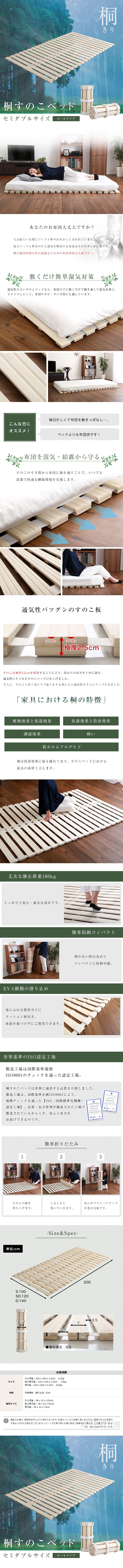 | 【ポイント】 通気性バツグンのすのこベッドです。 材質はすのこベッドにおける最良の桐材を使用しました。 頑丈な耐荷重180kgです。 |